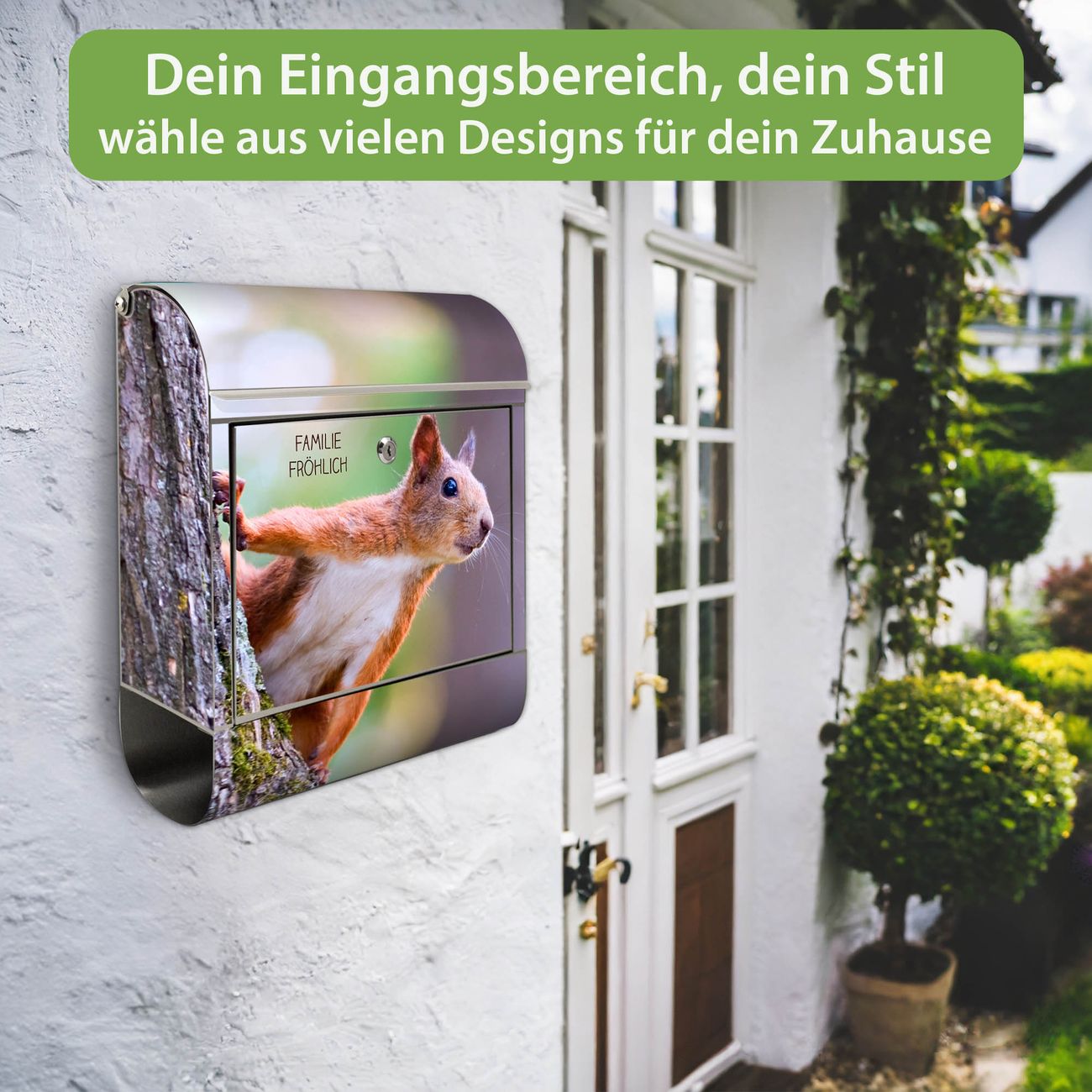 Wandbriefkasten Edelstahl Motiv Eichhörnchen