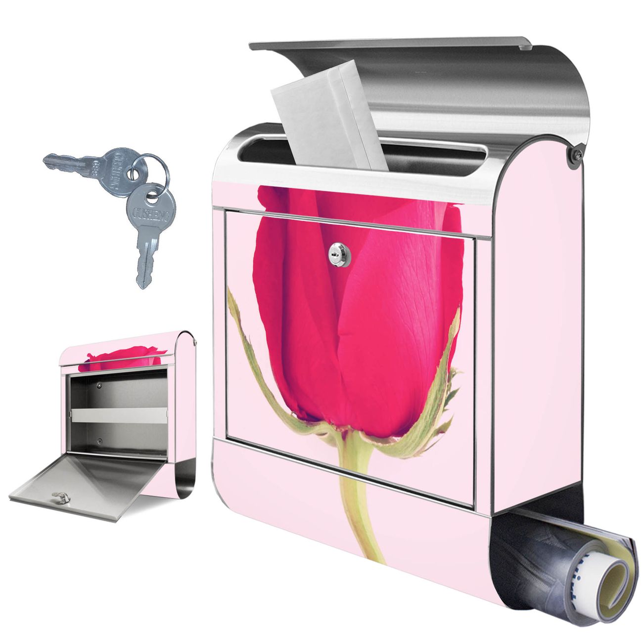 Wandbriefkasten Edelstahl Motiv Einzelne Rose