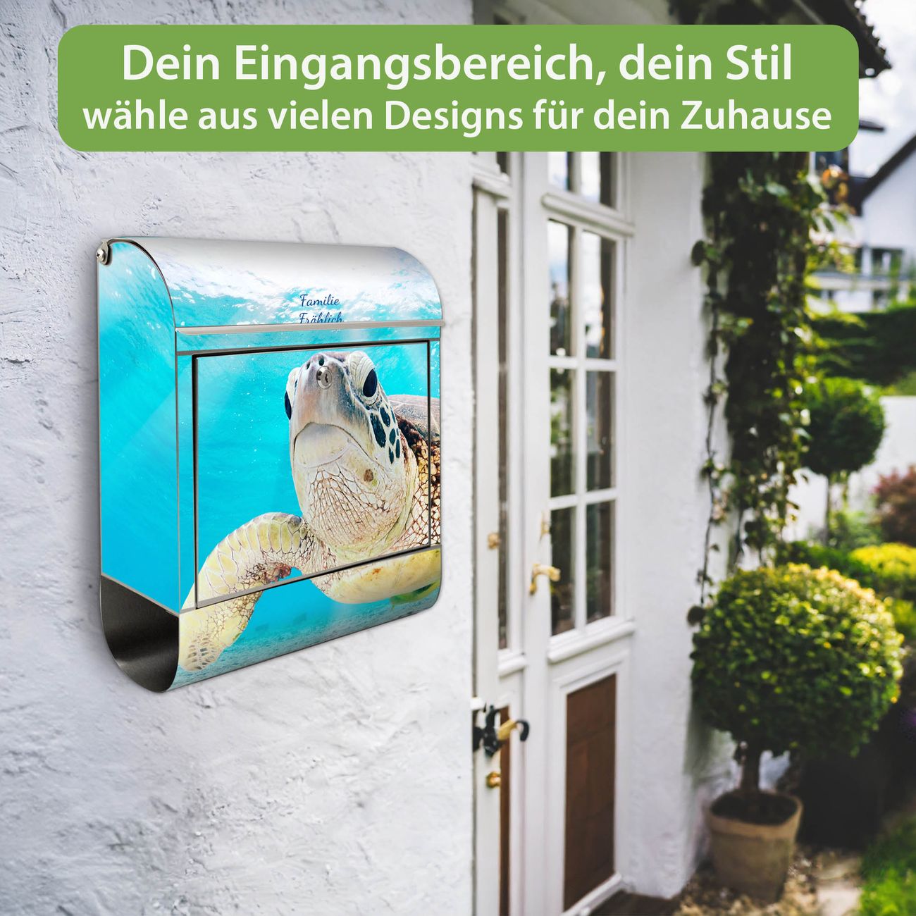 Der Vorschau-Text Familie Fröhlich wird durch Ihren persönlichen Wunschtext ersetzt. Die Schriftart und Farbe bleiben gleich wie in der Vorschau.