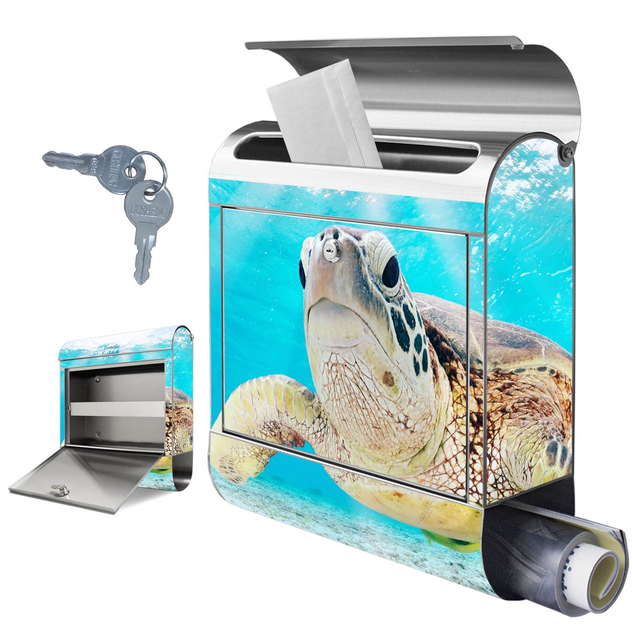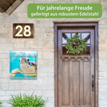 FUNKTION: Der banjado Edelstahl Briefkasten mit Motiv Motiv Elvis bietet Ihnen mit seinem Fassungsvermögen genügend Platz auch für große A4 Sendungen. Das integrierte Zeitungsfach eignet sich hervorragend um unkompliziert die Tageszeitung zu fassen. Auf Wunsch können Sie bei uns den passenden Ständer kaufen und so aus dem Wandbriefkasten einen Standbriefkasten machen. DESIGN: Der Motivbriefkasten hat ein sehr ansprechendes und ausgefallenes Design, damit entlocken Sie Ihren Nachbarn und dem Postboten ein Lächeln. Heben Sie Sich ab von der tristen grauen Masse ohne auf Funktionalität zu verzichten. DETAILS: Der Design Briefkasten mit Motiv Motiv Elvis besteht aus hochwertigem 18/0 Edelstahl. Das Motiv besteht aus einer wetter- und UV-resistenten Folie, die mit einem Schutzlaminat überzogen ist. Der Briefkasten wird mit Montagematerial und zwei Schlüsseln geliefert. NUTZEN: Sie können diesen Briefkasten sowohl als Wandbriefkasten montieren oder einen passenden Ständer auswählen und als Standbriefkasten einbetonieren. Die Größe bietet genügend Platz für Sendungen aller Art, das hochwertige Edelstahl ist rostfrei und die Motivfolie absolut wetterfest. SCHUTZ: Um Ihre Post optimal vor Witterungseinflüssen wie Starkregen zu schützen, empfehlen wir, den Briefkasten geschützt anzubringen. BANJADO: Ihr Briefkasten wird in Sachsen in einer kleinen Manufaktur von Hand veredelt. Die Motivfolie ist lösungsmittelfrei und schutzlaminiert, dies sorgt für einen langen Halt. Wir legen großen Wert auf die Verbindung von Funktionalität und Design. Sie erhalten Handarbeit aus Sachsen.