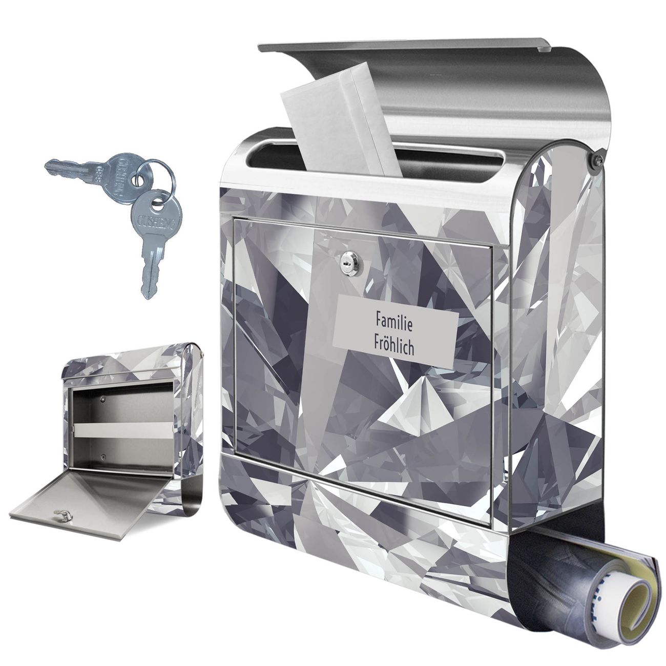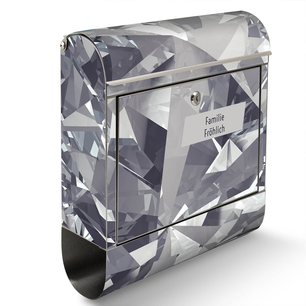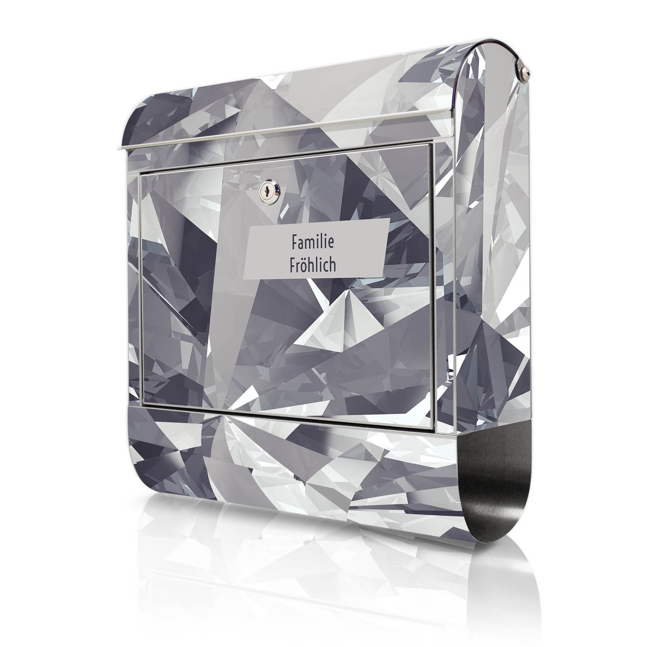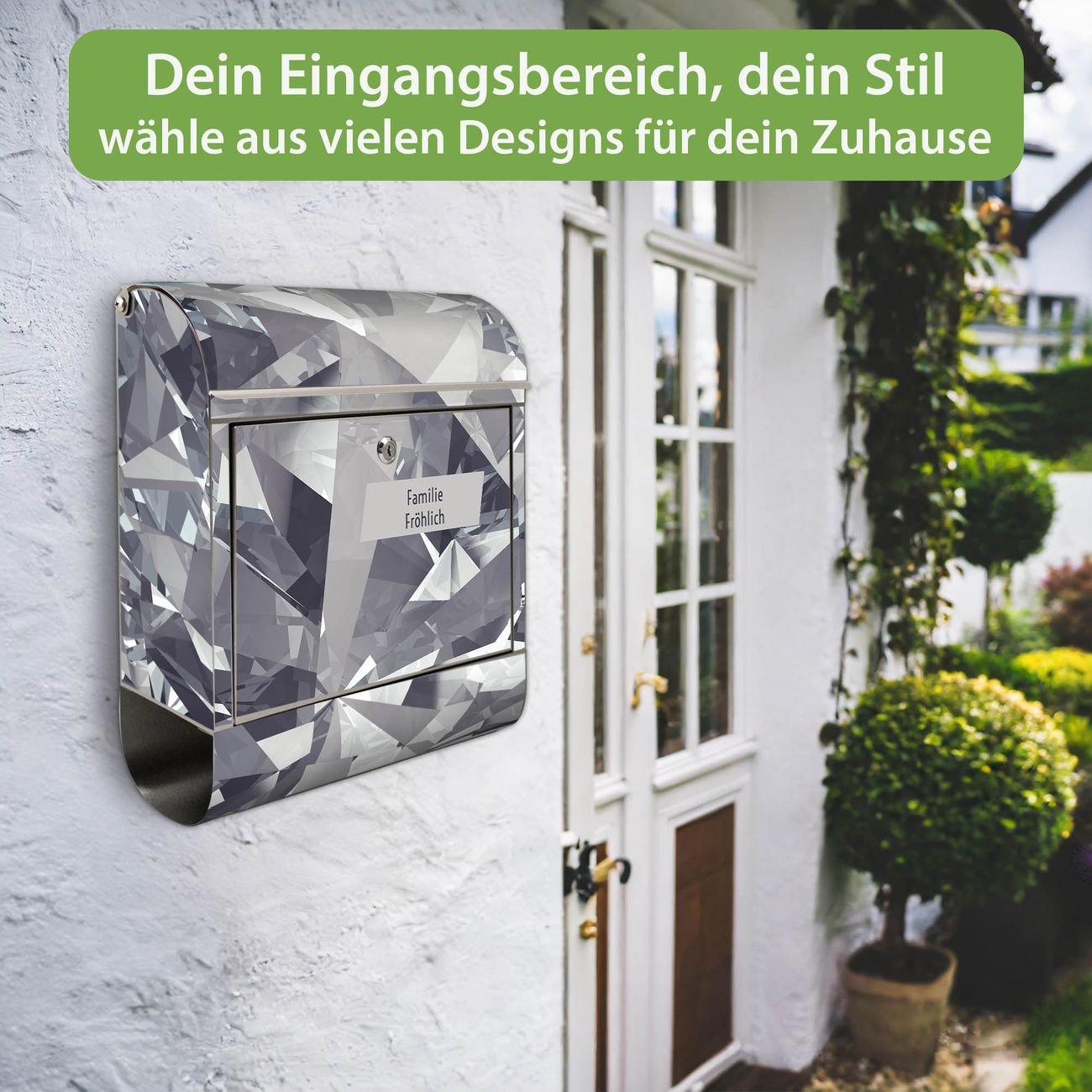 Wandbriefkasten Edelstahl Motiv Facetten Monochrome