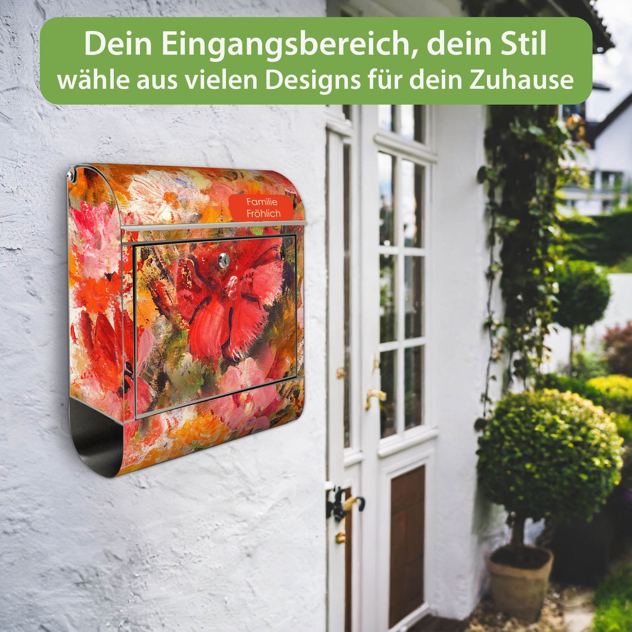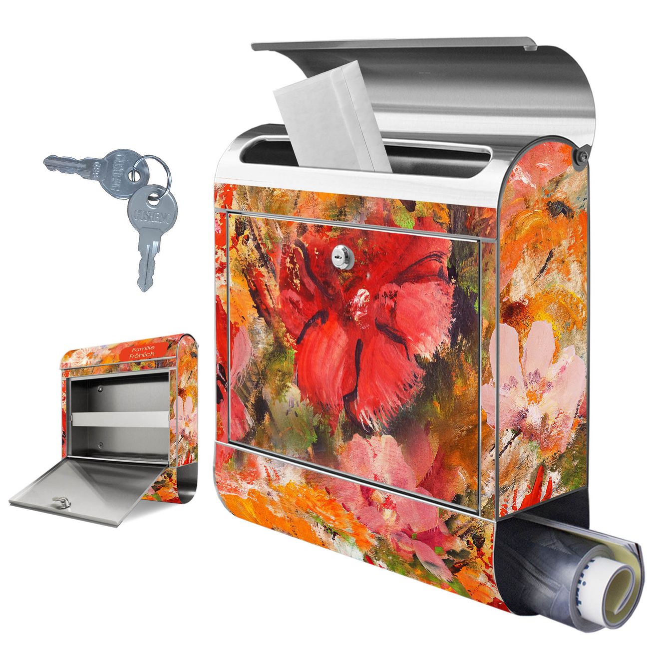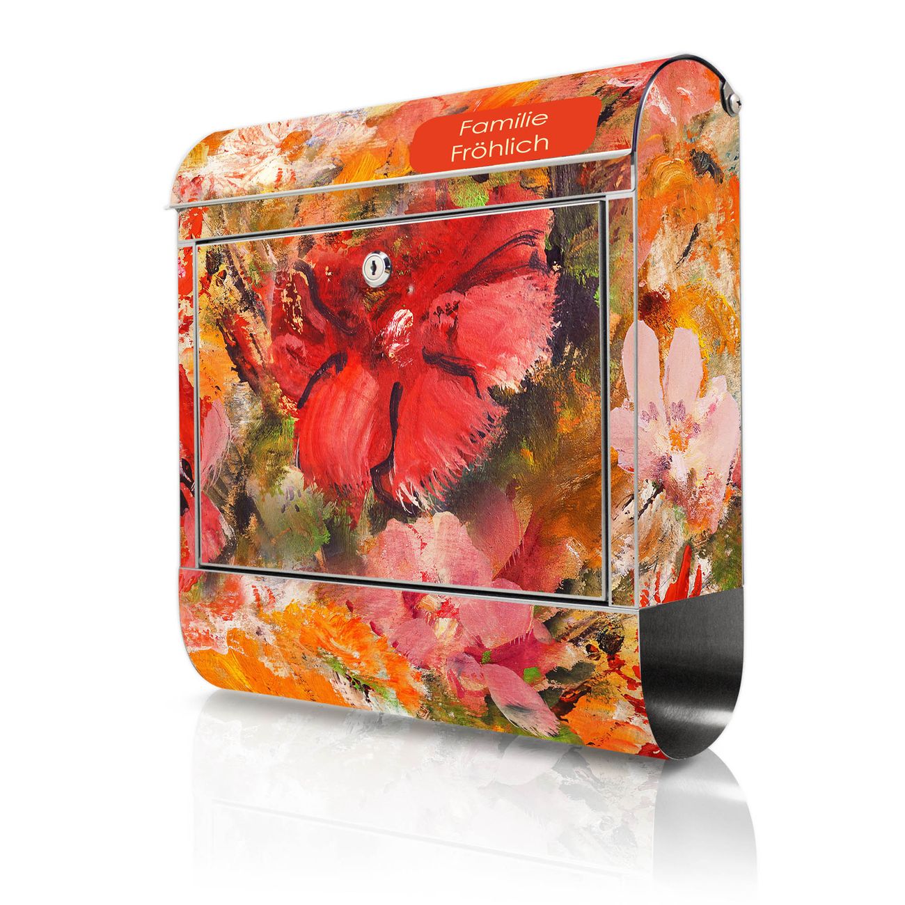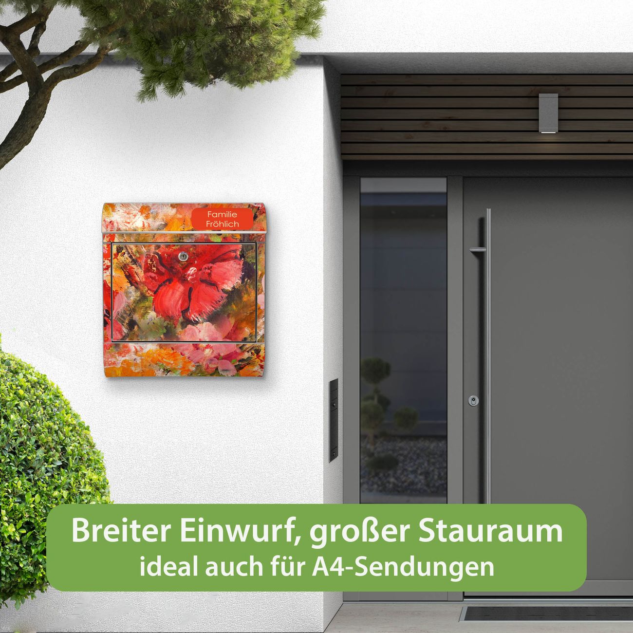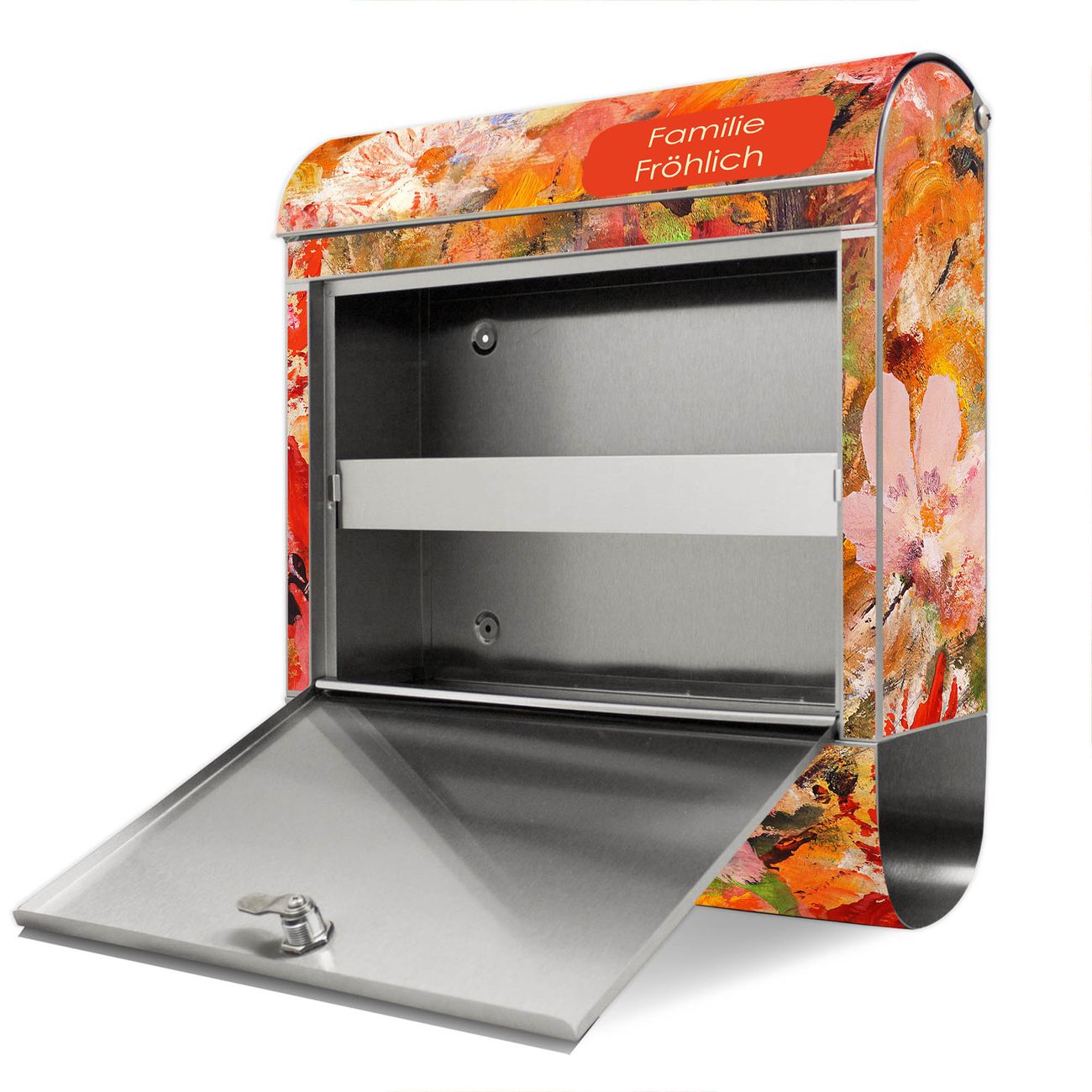 Wandbriefkasten Edelstahl Motiv Fallende Blumen