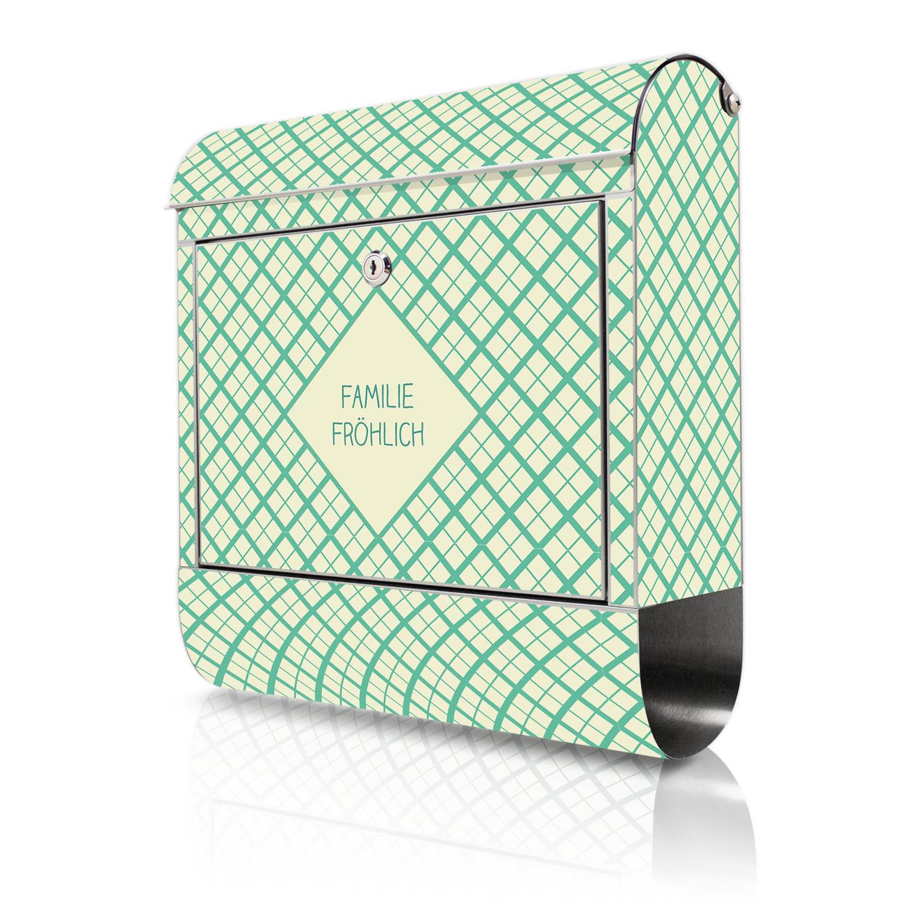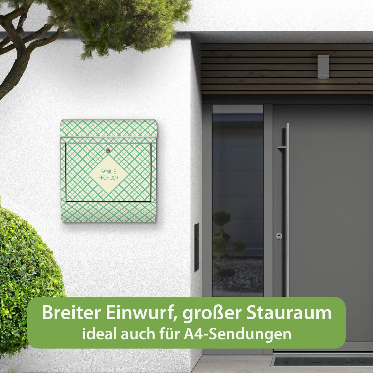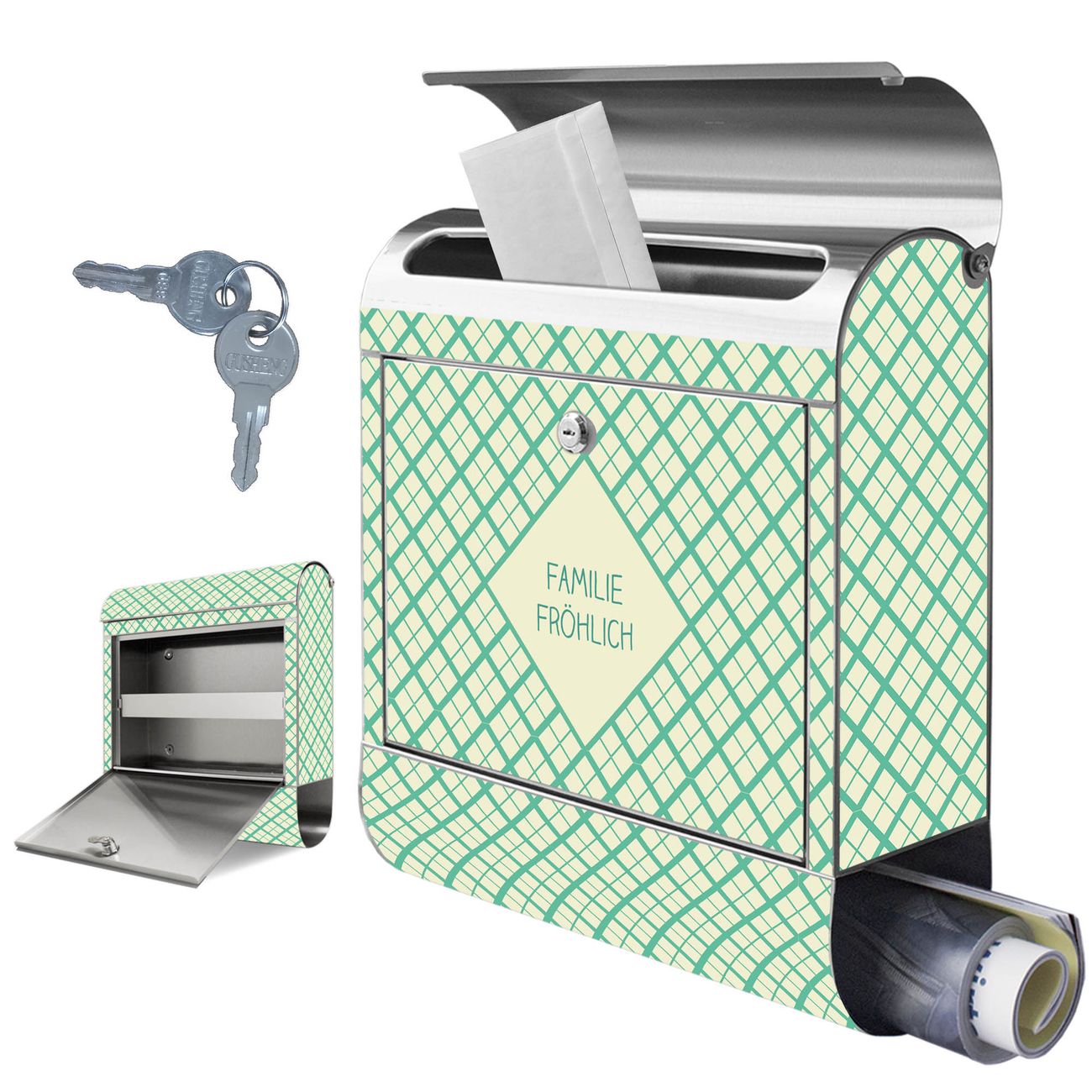 Wandbriefkasten Edelstahl Motiv Feines Rautenmuster