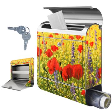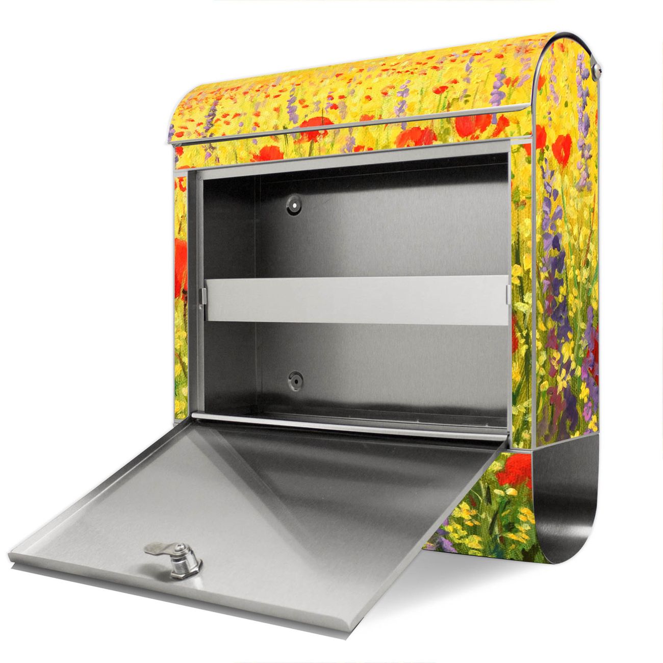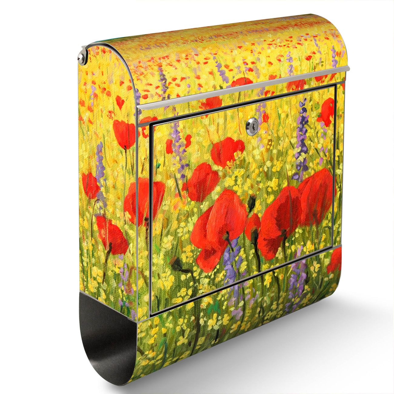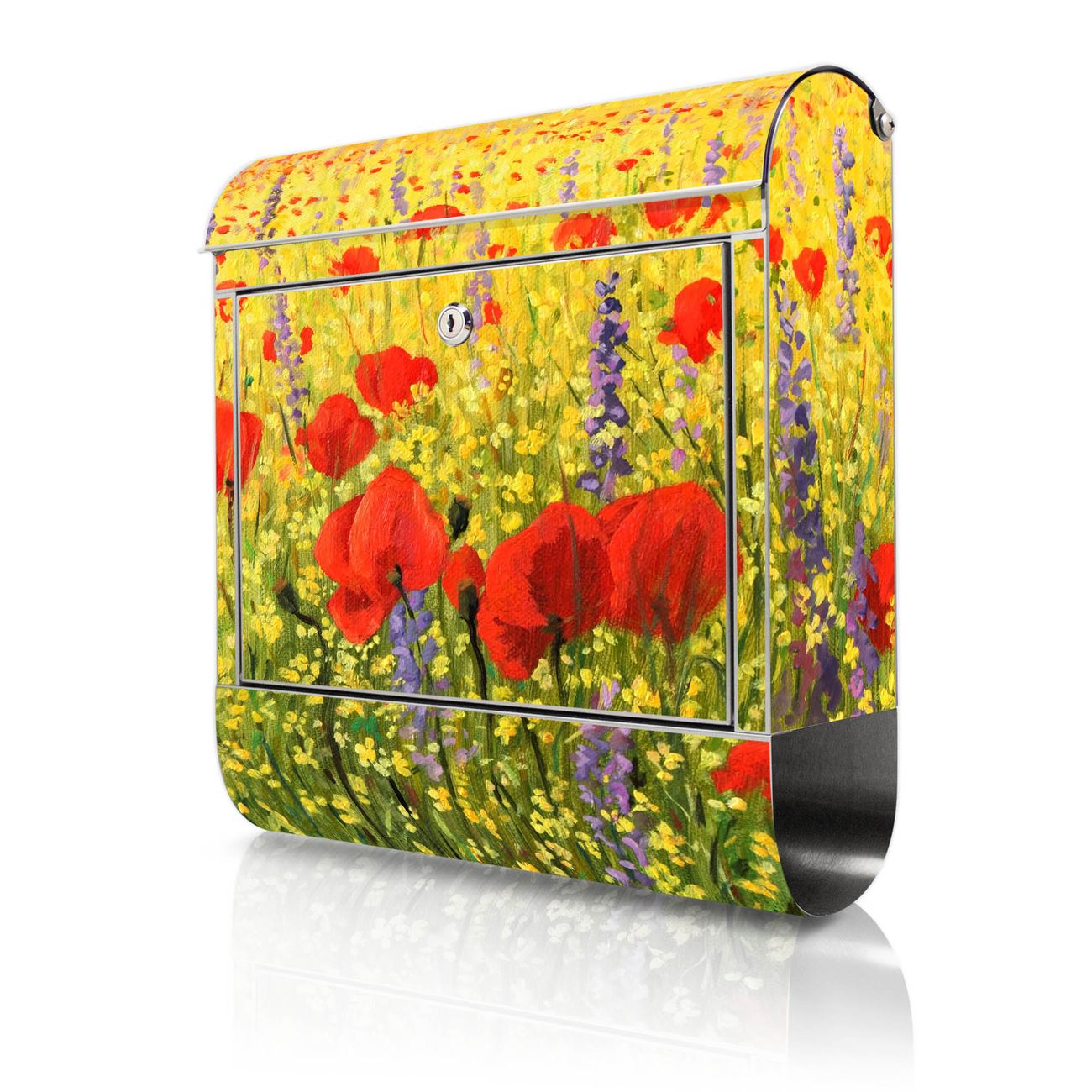 Wandbriefkasten Edelstahl Motiv Feld Mit Mohnblumen