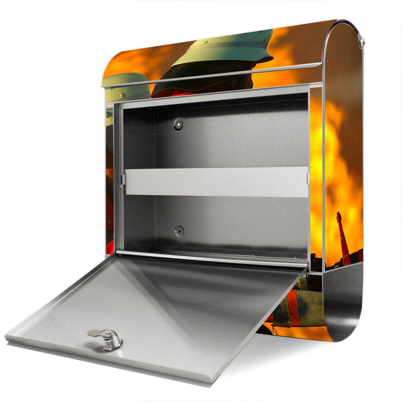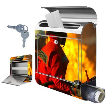 FUNKTION: Der banjado Edelstahl Briefkasten mit Motiv Motiv Feuer bietet Ihnen mit seinem Fassungsvermögen genügend Platz auch für große A4 Sendungen. Das integrierte Zeitungsfach eignet sich hervorragend um unkompliziert die Tageszeitung zu fassen. Auf Wunsch können Sie bei uns den passenden Ständer kaufen und so aus dem Wandbriefkasten einen Standbriefkasten machen. DESIGN: Der Motivbriefkasten hat ein sehr ansprechendes und ausgefallenes Design, damit entlocken Sie Ihren Nachbarn und dem Postboten ein Lächeln. Heben Sie Sich ab von der tristen grauen Masse ohne auf Funktionalität zu verzichten. DETAILS: Der Design Briefkasten mit Motiv Motiv Feuer besteht aus hochwertigem 18/0 Edelstahl. Das Motiv besteht aus einer wetter- und UV-resistenten Folie, die mit einem Schutzlaminat überzogen ist. Der Briefkasten wird mit Montagematerial und zwei Schlüsseln geliefert. NUTZEN: Sie können diesen Briefkasten sowohl als Wandbriefkasten montieren oder einen passenden Ständer auswählen und als Standbriefkasten einbetonieren. Die Größe bietet genügend Platz für Sendungen aller Art, das hochwertige Edelstahl ist rostfrei und die Motivfolie absolut wetterfest. SCHUTZ: Um Ihre Post optimal vor Witterungseinflüssen wie Starkregen zu schützen, empfehlen wir, den Briefkasten geschützt anzubringen. BANJADO: Ihr Briefkasten wird in Sachsen in einer kleinen Manufaktur von Hand veredelt. Die Motivfolie ist lösungsmittelfrei und schutzlaminiert, dies sorgt für einen langen Halt. Wir legen großen Wert auf die Verbindung von Funktionalität und Design. Sie erhalten Handarbeit aus Sachsen.