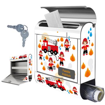 Wandbriefkasten Edelstahl Motiv Feuerwehr