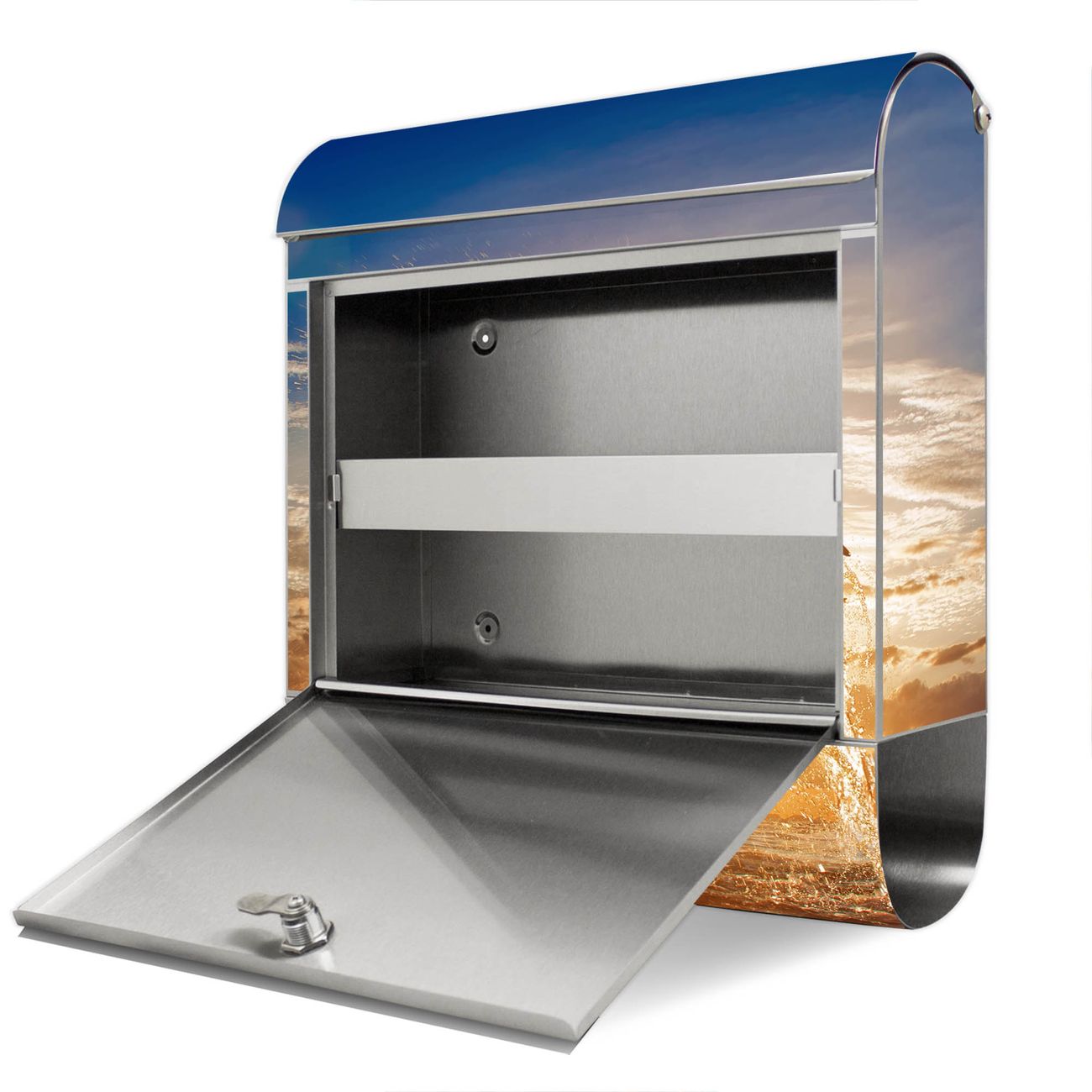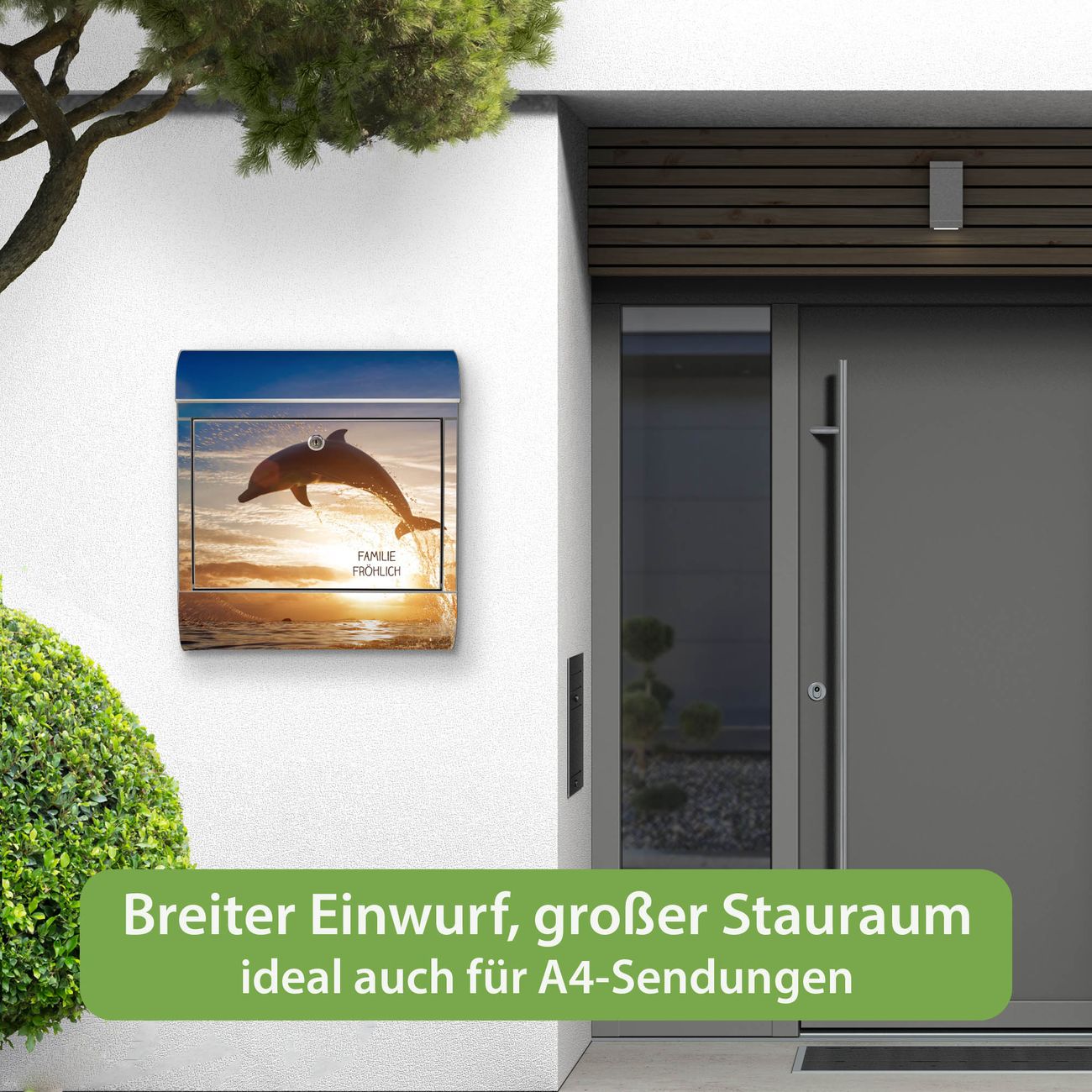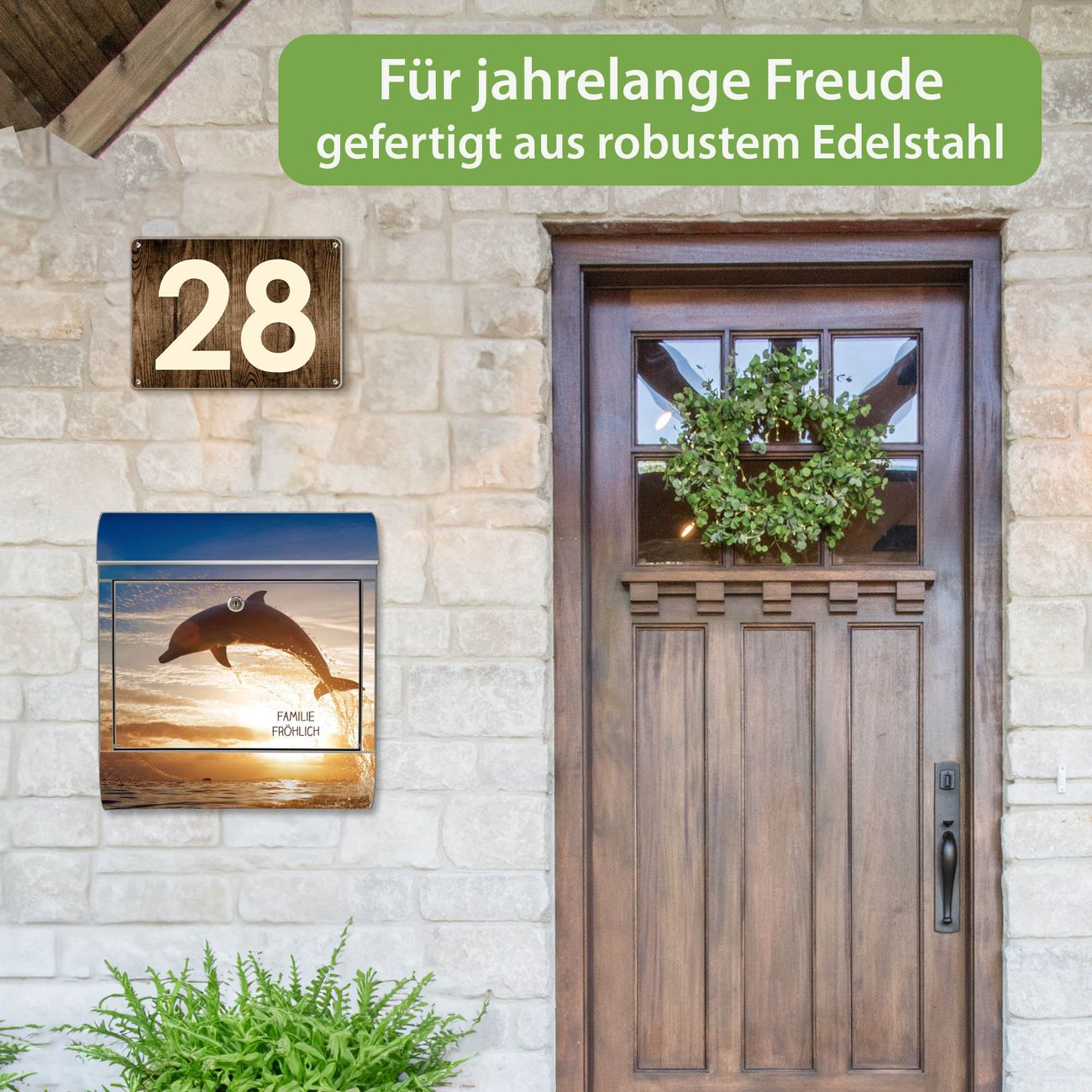 FUNKTION: Der banjado Edelstahl Briefkasten mit Motiv Motiv Filippo bietet Ihnen mit seinem Fassungsvermögen genügend Platz auch für große A4 Sendungen. Das integrierte Zeitungsfach eignet sich hervorragend um unkompliziert die Tageszeitung zu fassen. Auf Wunsch können Sie bei uns den passenden Ständer kaufen und so aus dem Wandbriefkasten einen Standbriefkasten machen. DESIGN: Der Motivbriefkasten hat ein sehr ansprechendes und ausgefallenes Design, damit entlocken Sie Ihren Nachbarn und dem Postboten ein Lächeln. Heben Sie Sich ab von der tristen grauen Masse ohne auf Funktionalität zu verzichten. DETAILS: Der Design Briefkasten mit Motiv Motiv Filippo besteht aus hochwertigem 18/0 Edelstahl. Das Motiv besteht aus einer wetter- und UV-resistenten Folie, die mit einem Schutzlaminat überzogen ist. Der Briefkasten wird mit Montagematerial und zwei Schlüsseln geliefert. NUTZEN: Sie können diesen Briefkasten sowohl als Wandbriefkasten montieren oder einen passenden Ständer auswählen und als Standbriefkasten einbetonieren. Die Größe bietet genügend Platz für Sendungen aller Art, das hochwertige Edelstahl ist rostfrei und die Motivfolie absolut wetterfest. SCHUTZ: Um Ihre Post optimal vor Witterungseinflüssen wie Starkregen zu schützen, empfehlen wir, den Briefkasten geschützt anzubringen. BANJADO: Ihr Briefkasten wird in Sachsen in einer kleinen Manufaktur von Hand veredelt. Die Motivfolie ist lösungsmittelfrei und schutzlaminiert, dies sorgt für einen langen Halt. Wir legen großen Wert auf die Verbindung von Funktionalität und Design. Sie erhalten Handarbeit aus Sachsen.