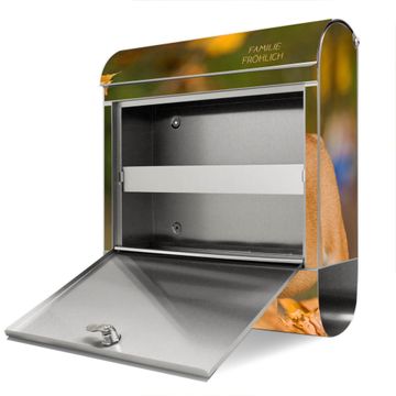FUNKTION: Der banjado Edelstahl Briefkasten mit Motiv Motiv Fiona bietet Ihnen mit seinem Fassungsvermögen genügend Platz auch für große A4 Sendungen. Das integrierte Zeitungsfach eignet sich hervorragend um unkompliziert die Tageszeitung zu fassen. Auf Wunsch können Sie bei uns den passenden Ständer kaufen und so aus dem Wandbriefkasten einen Standbriefkasten machen. DESIGN: Der Motivbriefkasten hat ein sehr ansprechendes und ausgefallenes Design, damit entlocken Sie Ihren Nachbarn und dem Postboten ein Lächeln. Heben Sie Sich ab von der tristen grauen Masse ohne auf Funktionalität zu verzichten. DETAILS: Der Design Briefkasten mit Motiv Motiv Fiona besteht aus hochwertigem 18/0 Edelstahl. Das Motiv besteht aus einer wetter- und UV-resistenten Folie, die mit einem Schutzlaminat überzogen ist. Der Briefkasten wird mit Montagematerial und zwei Schlüsseln geliefert. NUTZEN: Sie können diesen Briefkasten sowohl als Wandbriefkasten montieren oder einen passenden Ständer auswählen und als Standbriefkasten einbetonieren. Die Größe bietet genügend Platz für Sendungen aller Art, das hochwertige Edelstahl ist rostfrei und die Motivfolie absolut wetterfest. SCHUTZ: Um Ihre Post optimal vor Witterungseinflüssen wie Starkregen zu schützen, empfehlen wir, den Briefkasten geschützt anzubringen. BANJADO: Ihr Briefkasten wird in Sachsen in einer kleinen Manufaktur von Hand veredelt. Die Motivfolie ist lösungsmittelfrei und schutzlaminiert, dies sorgt für einen langen Halt. Wir legen großen Wert auf die Verbindung von Funktionalität und Design. Sie erhalten Handarbeit aus Sachsen.