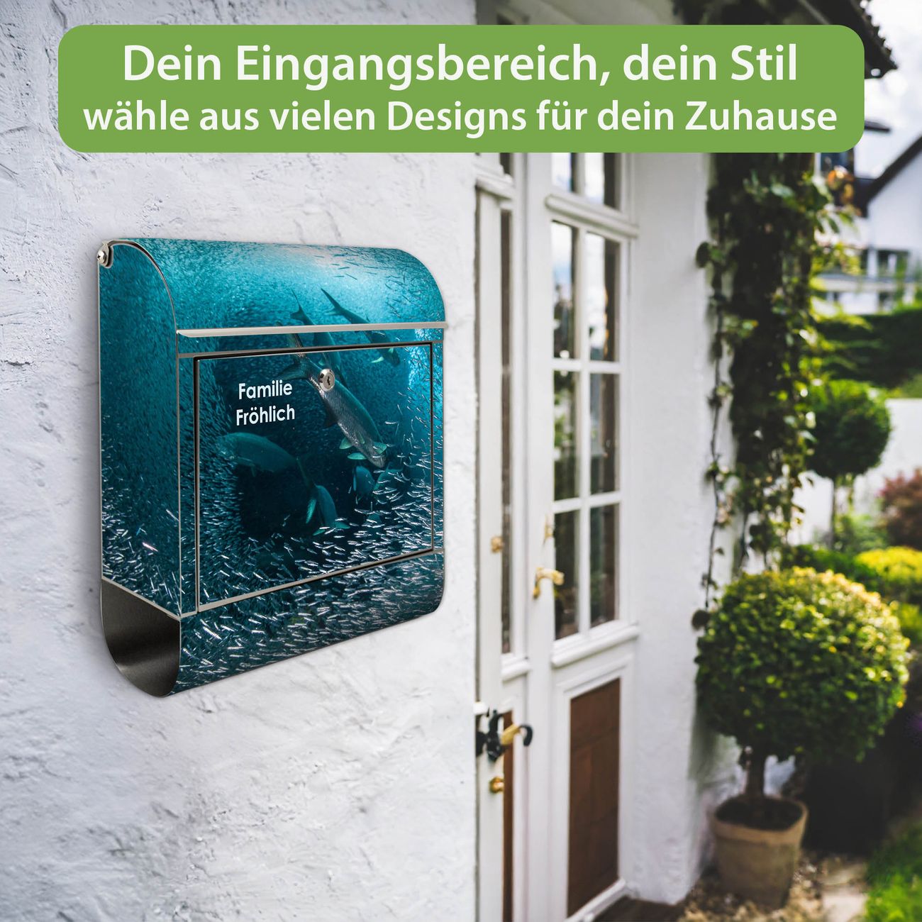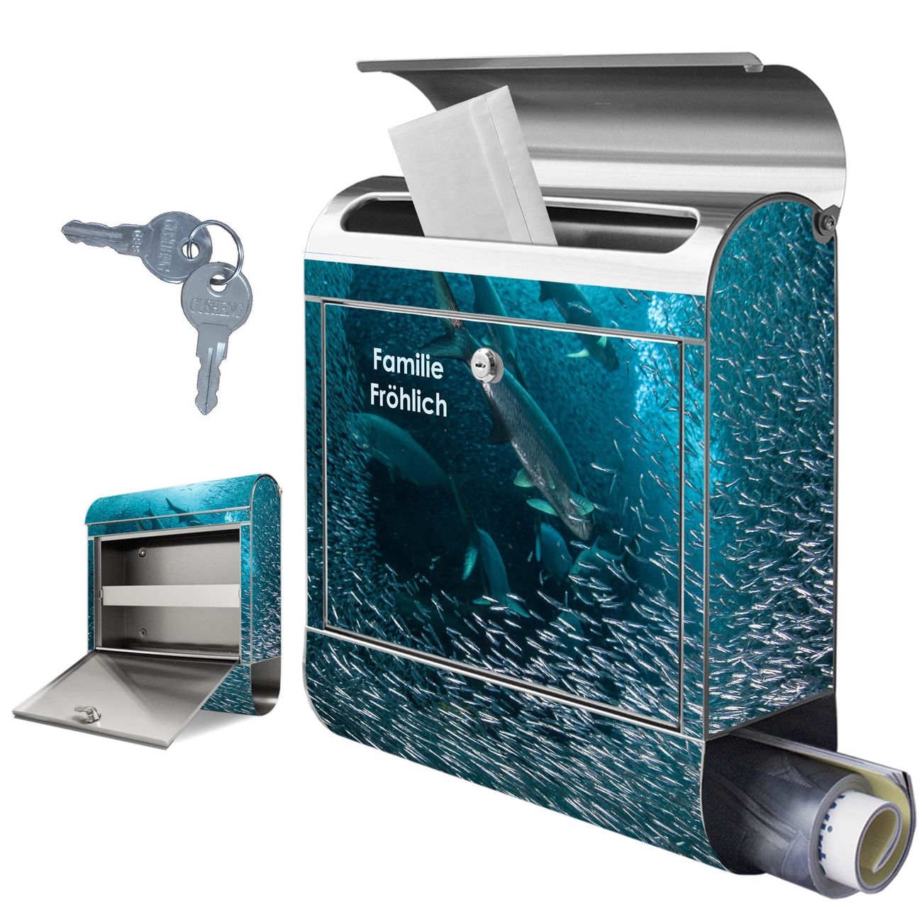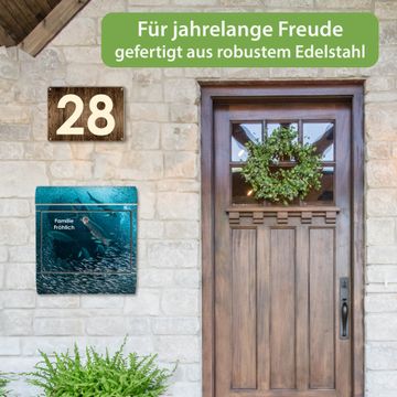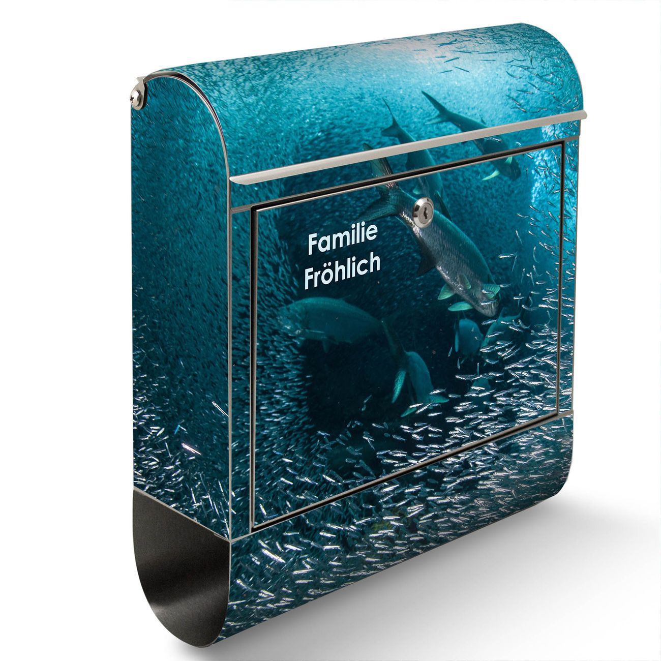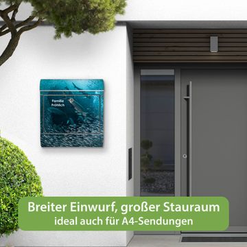 Wandbriefkasten Edelstahl Motiv Fische im Meer
