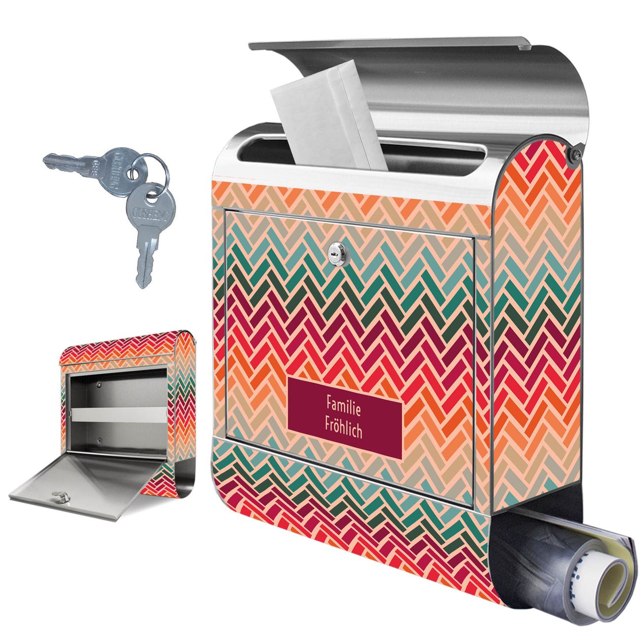 Wandbriefkasten Edelstahl Motiv Fischgräten