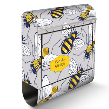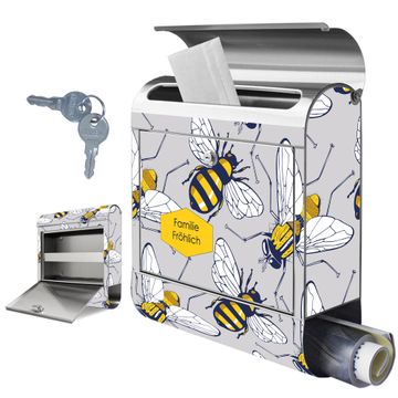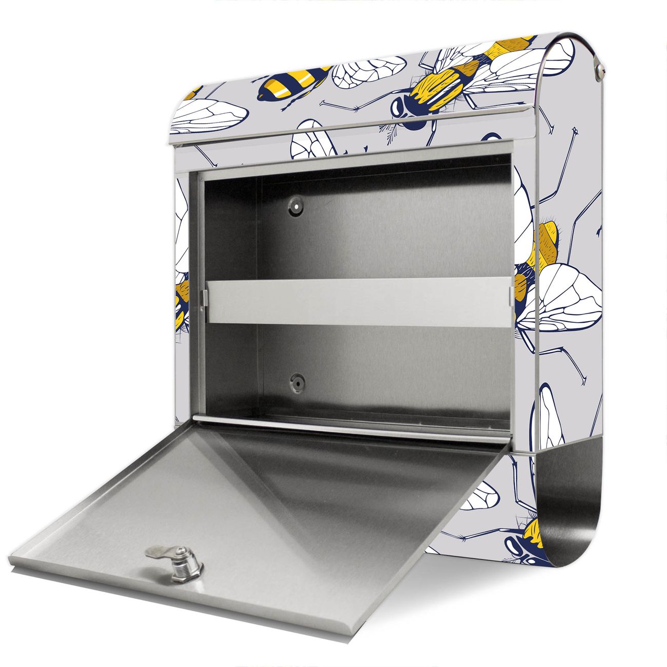 Wandbriefkasten Edelstahl Motiv Fliegen und Bienen