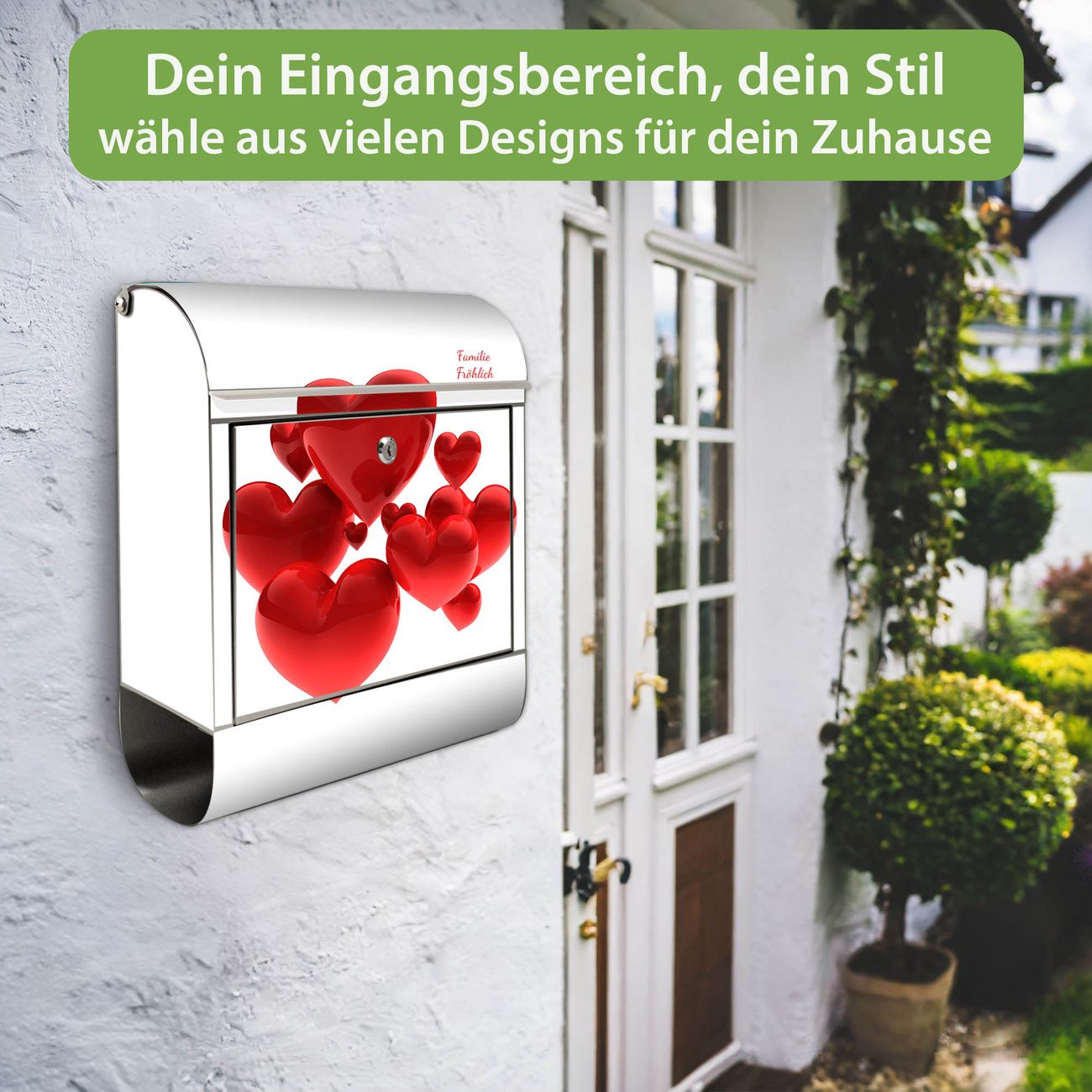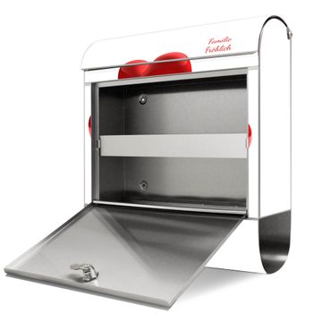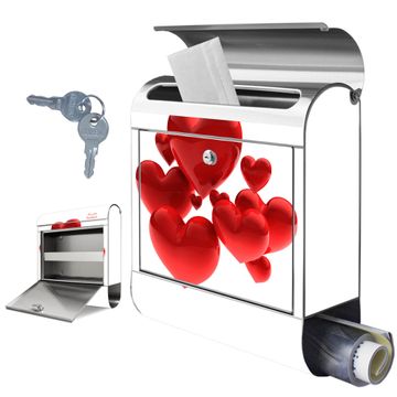 Wandbriefkasten Edelstahl Motiv Fliegende Herzen