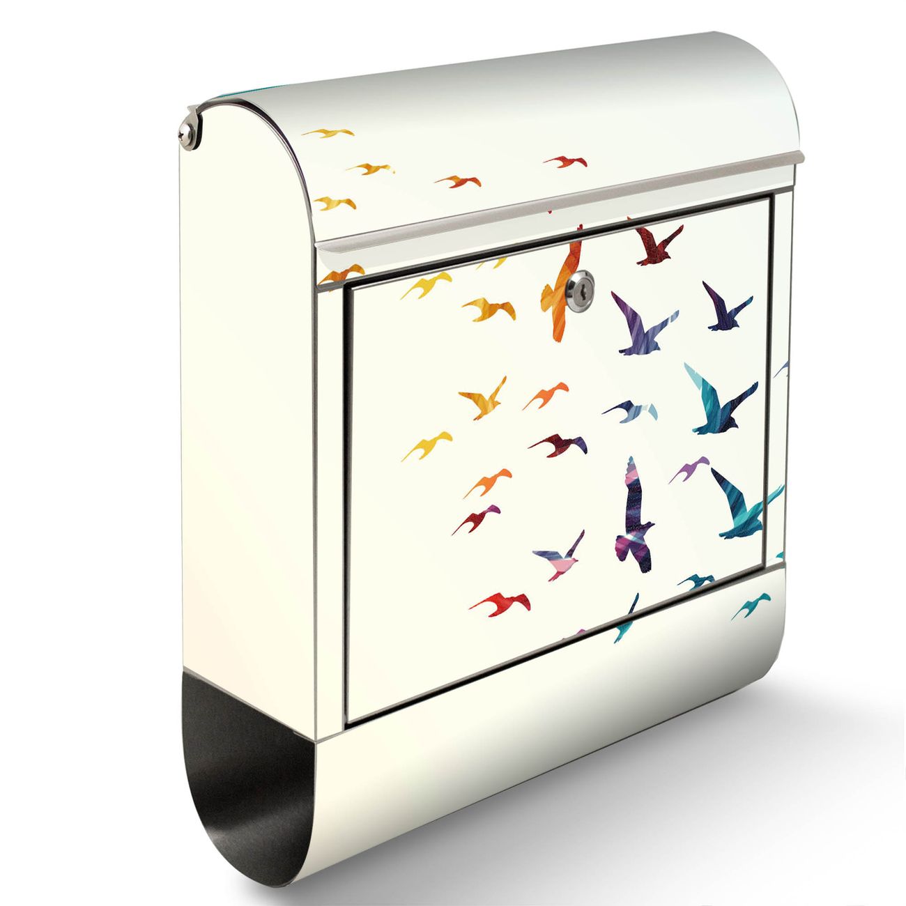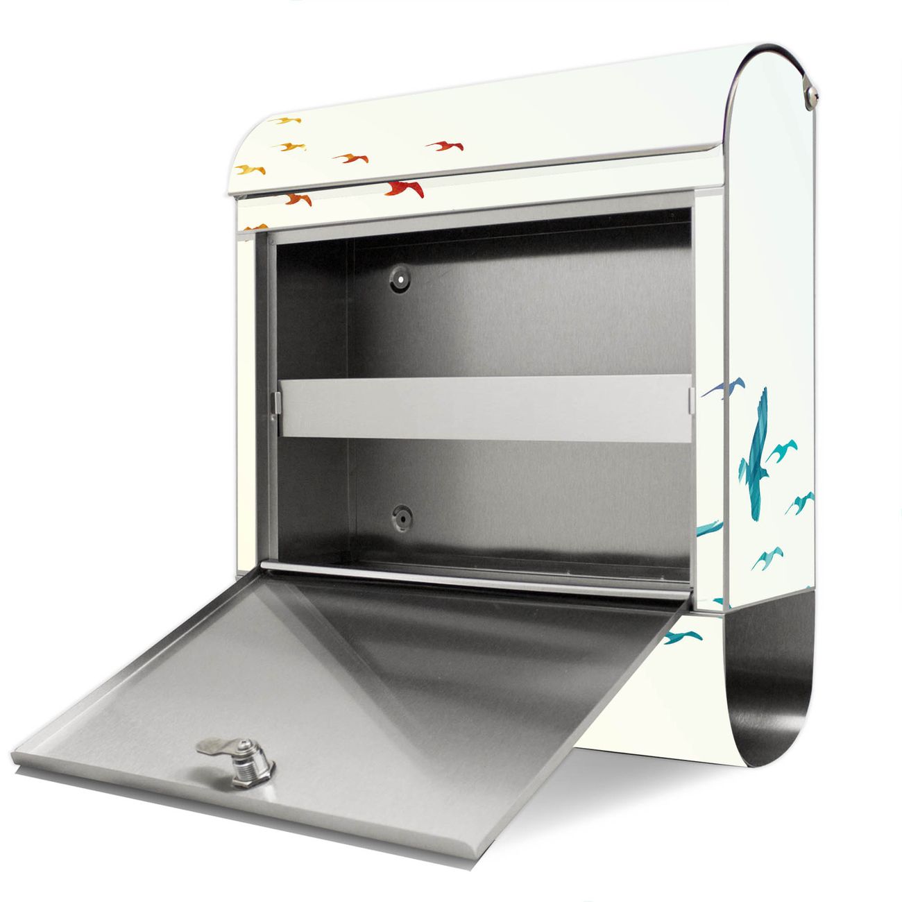 Wandbriefkasten Edelstahl Motiv Fliegende Vögel