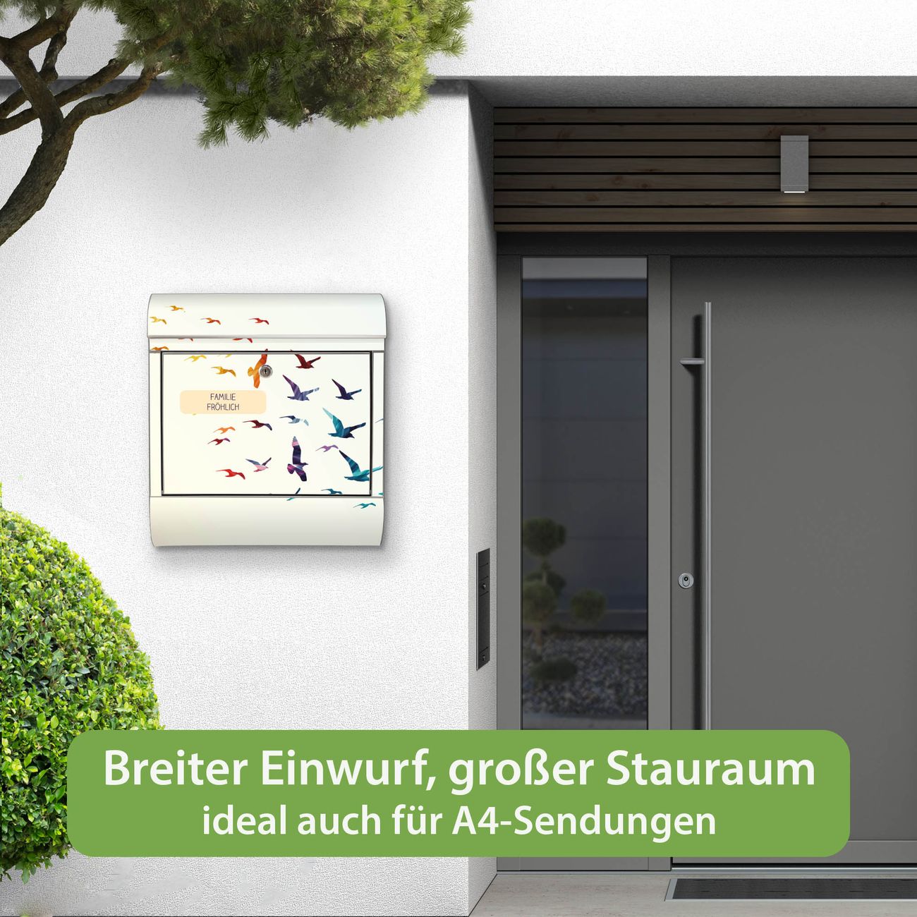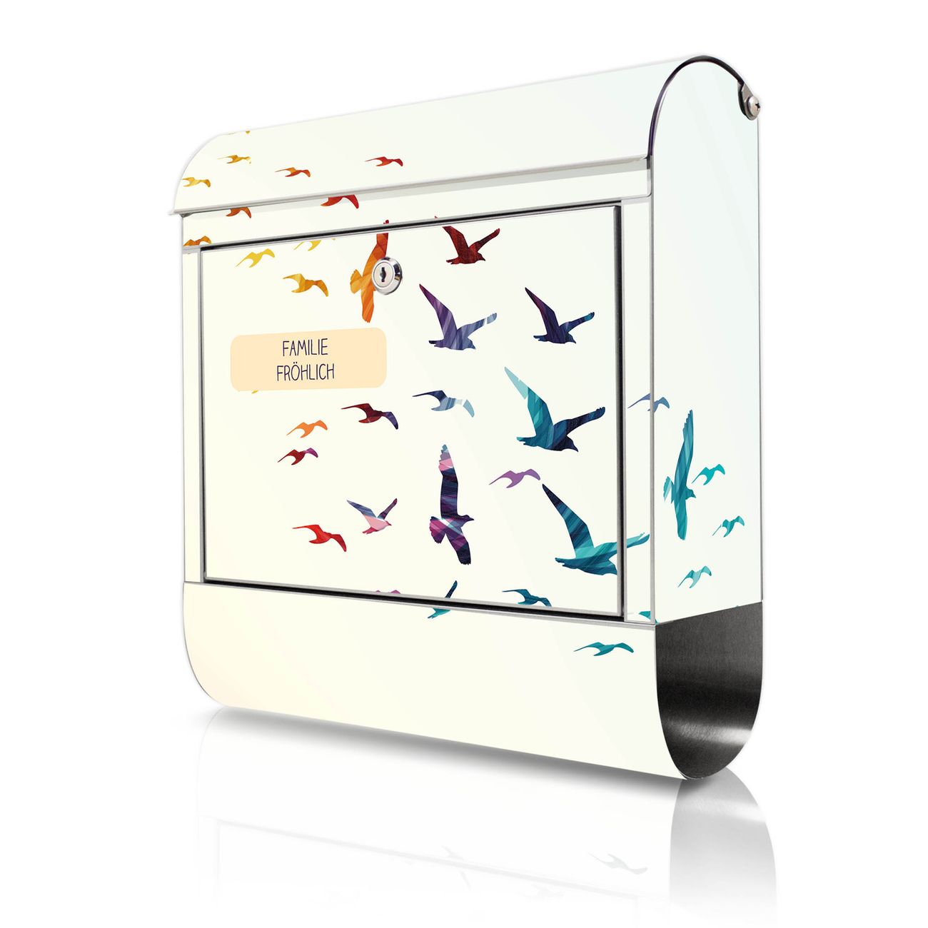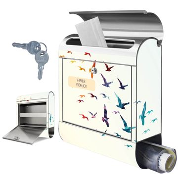 Wandbriefkasten Edelstahl Motiv Fliegende Vögel