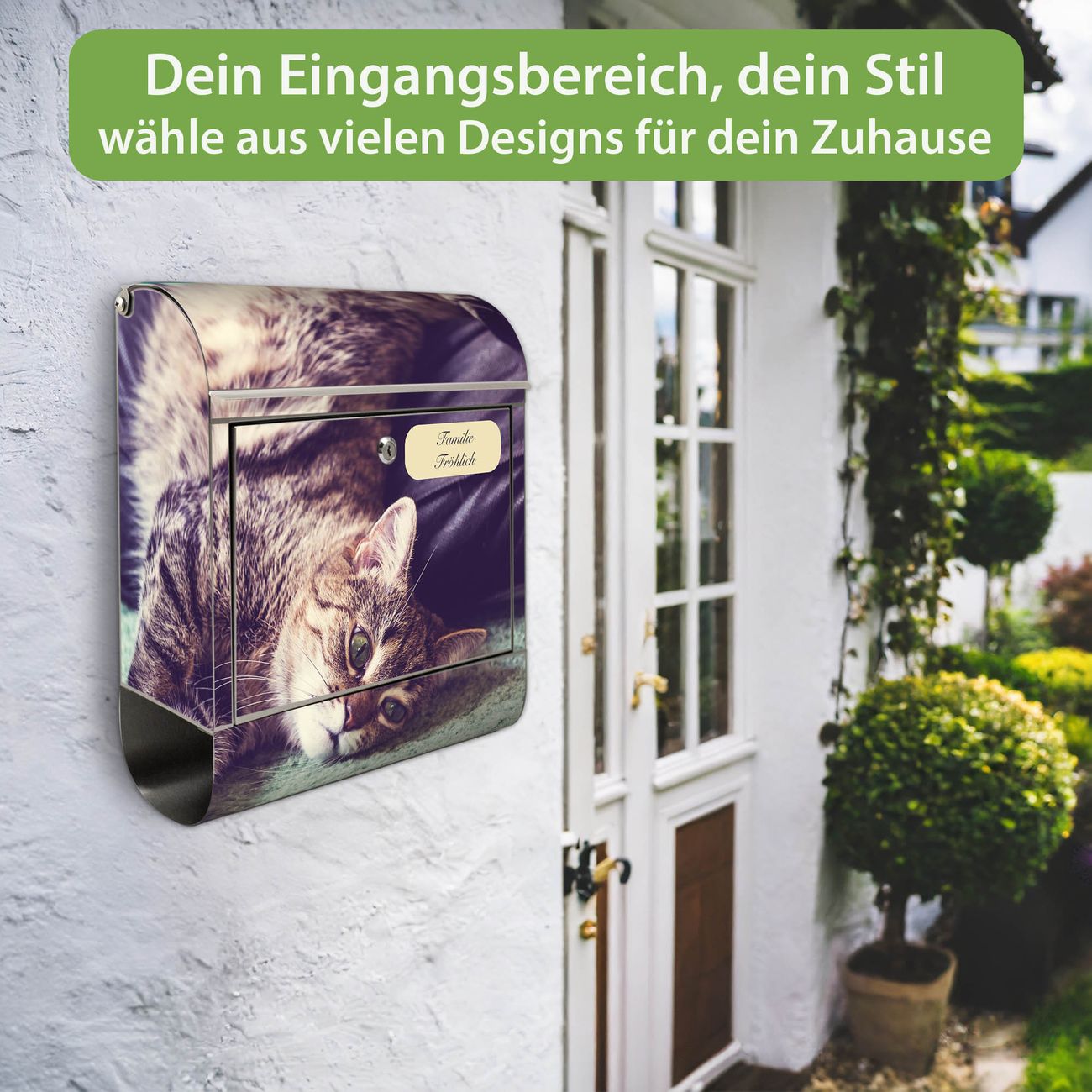 Der Vorschau-Text Familie Fröhlich wird durch Ihren persönlichen Wunschtext ersetzt. Die Schriftart und Farbe bleiben gleich wie in der Vorschau.