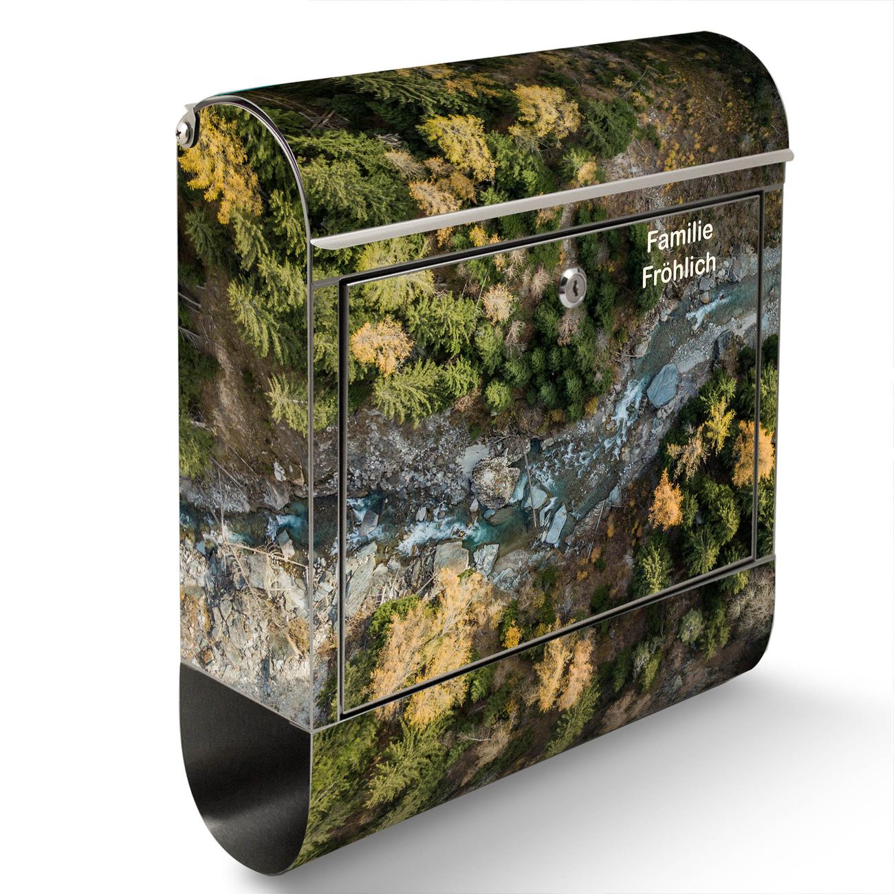 Wandbriefkasten Edelstahl Motiv Fluss im Tal 2