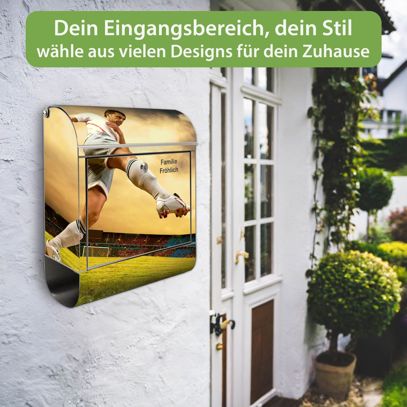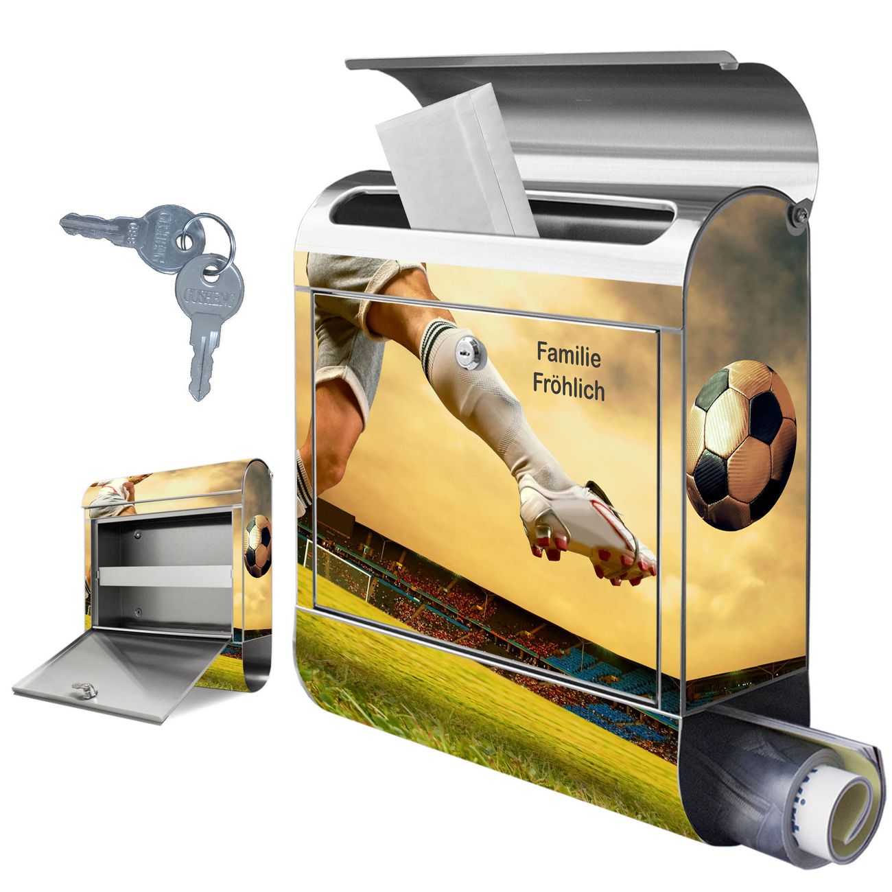 Wandbriefkasten Edelstahl Motiv Football