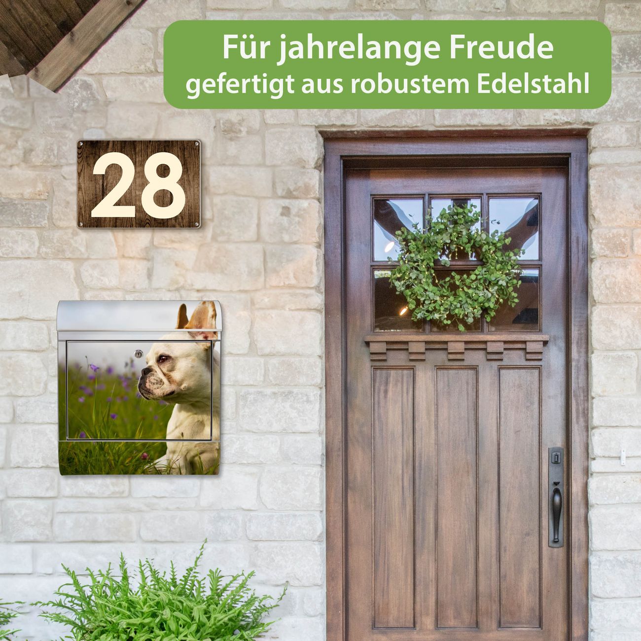 Wandbriefkasten Edelstahl Motiv Französische Bulldogge
