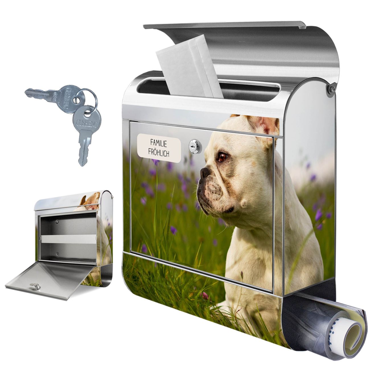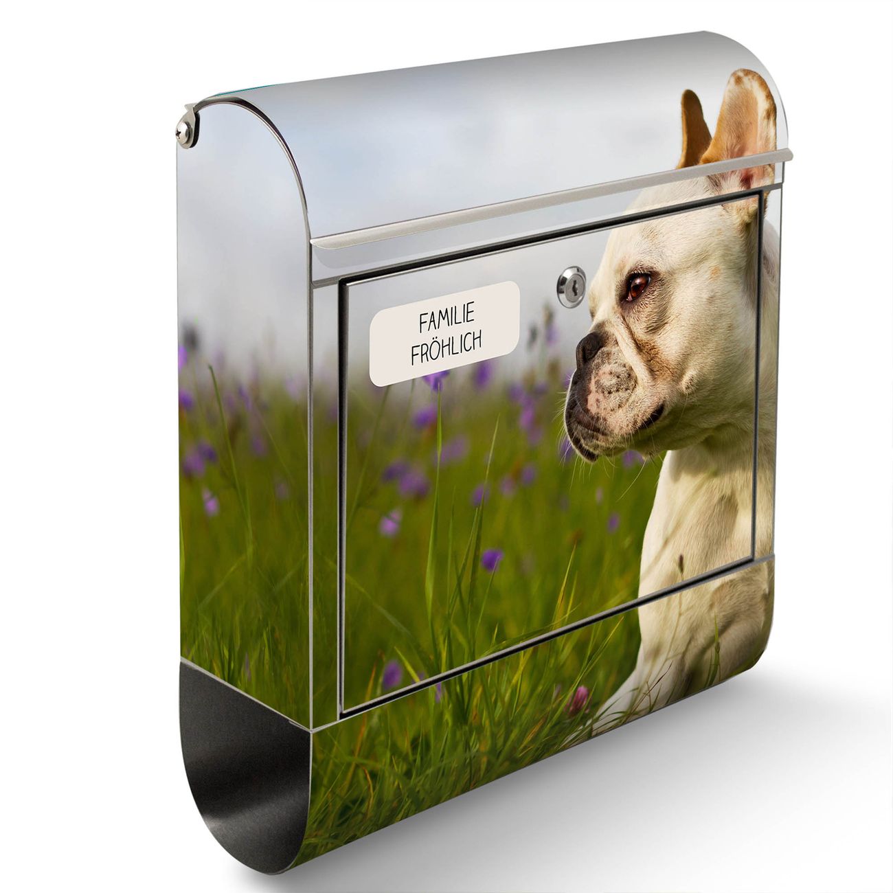 Wandbriefkasten Edelstahl Motiv Französische Bulldogge