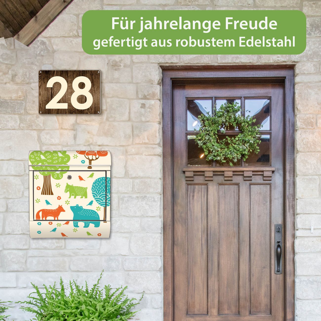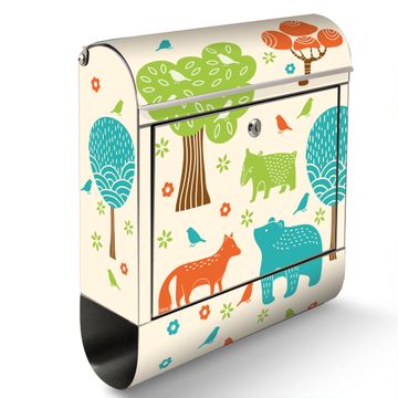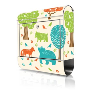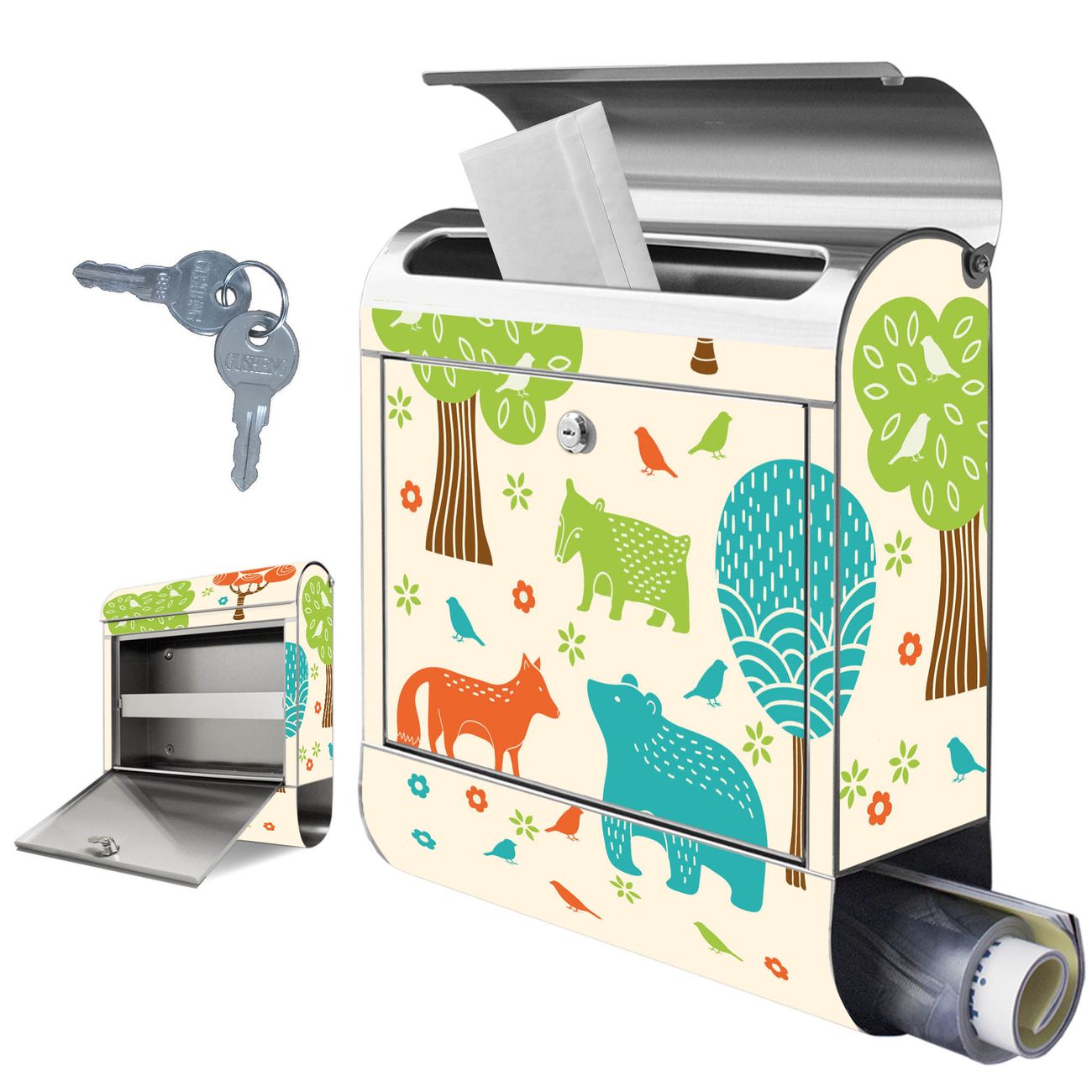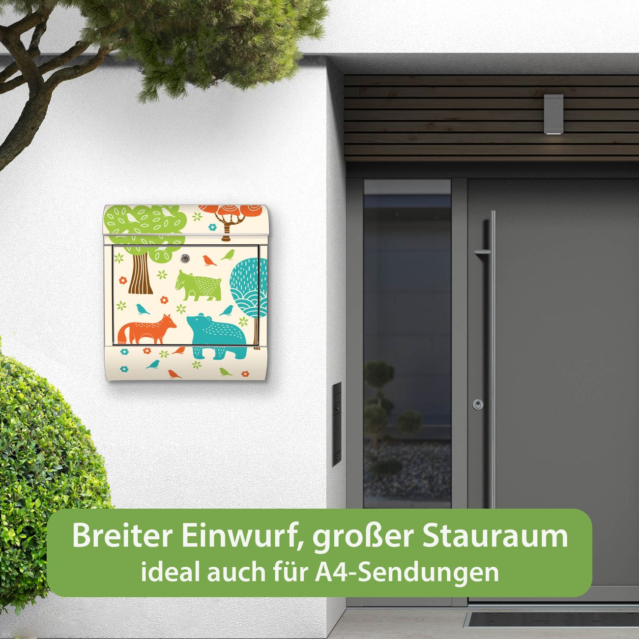 Wandbriefkasten Edelstahl Motiv Fuchs Bär Wald