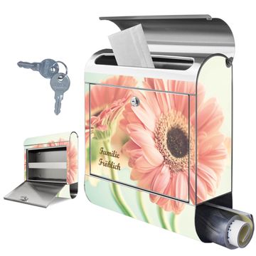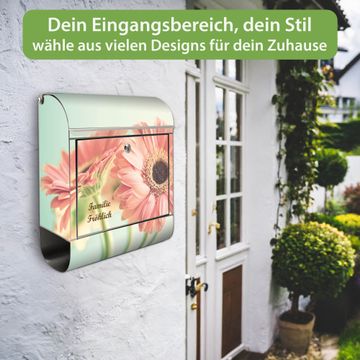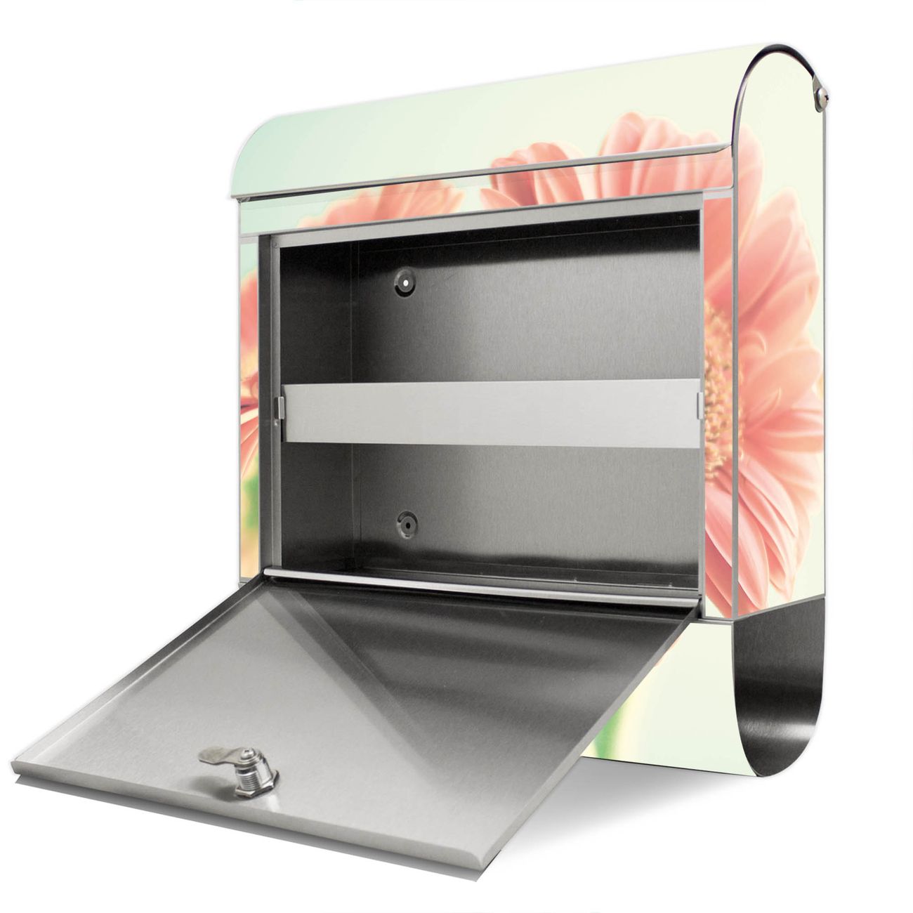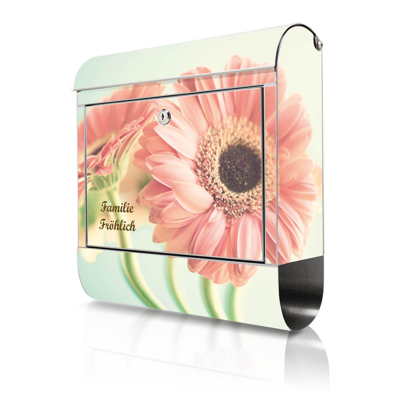 Wandbriefkasten Edelstahl Motiv Fünf Gerbera