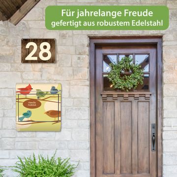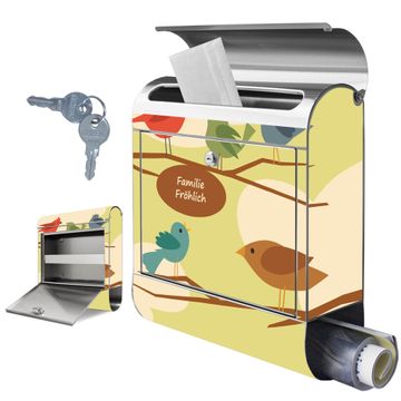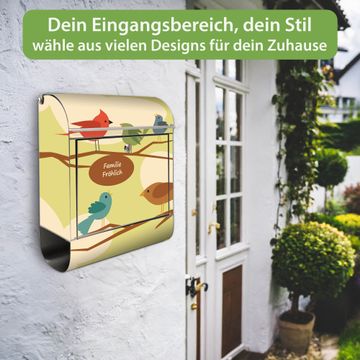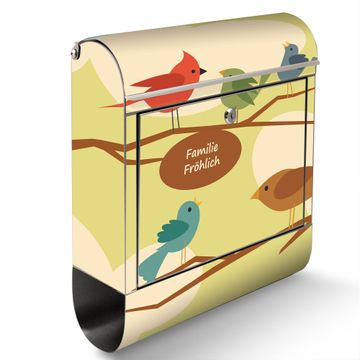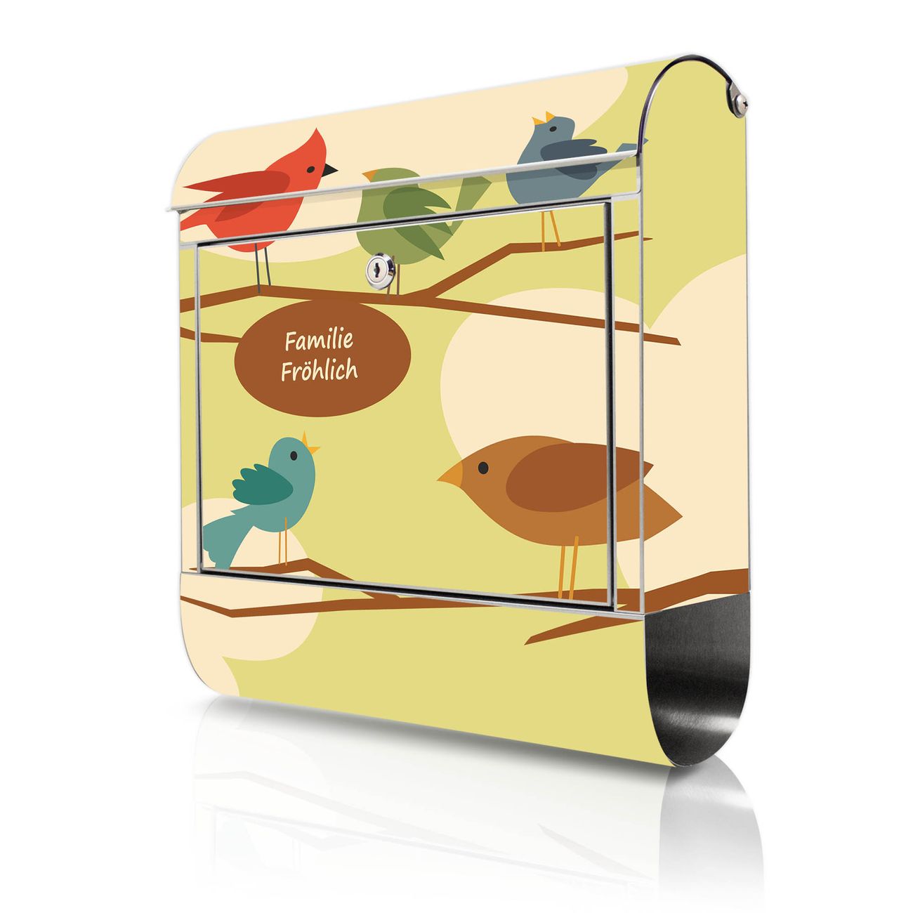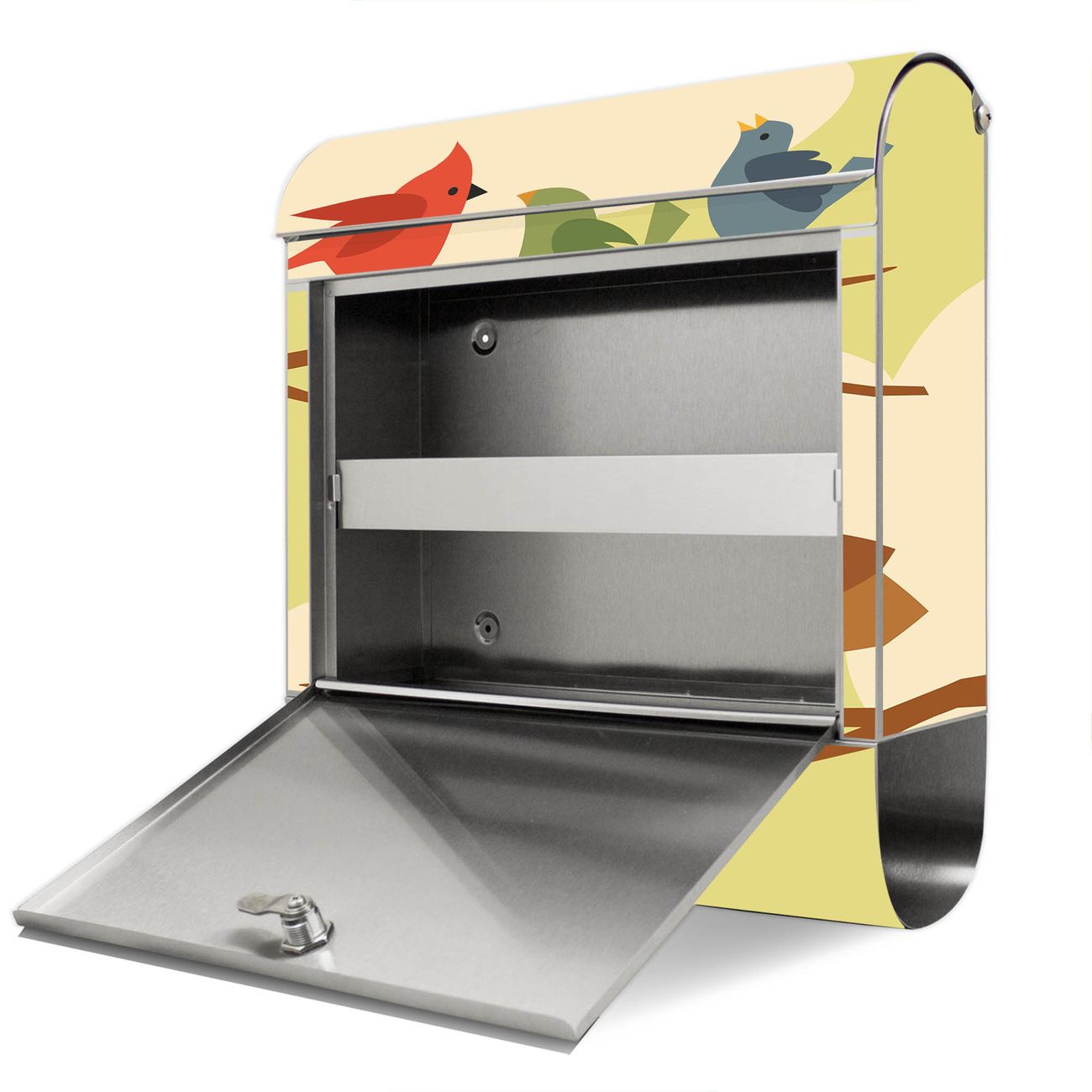 Wandbriefkasten Edelstahl Motiv Fünf Vögel