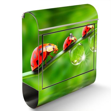 FUNKTION: Der banjado Edelstahl Briefkasten mit Motiv Motiv Für Jeden Einen bietet Ihnen mit seinem Fassungsvermögen genügend Platz auch für große A4 Sendungen. Das integrierte Zeitungsfach eignet sich hervorragend um unkompliziert die Tageszeitung zu fassen. Auf Wunsch können Sie bei uns den passenden Ständer kaufen und so aus dem Wandbriefkasten einen Standbriefkasten machen. DESIGN: Der Motivbriefkasten hat ein sehr ansprechendes und ausgefallenes Design, damit entlocken Sie Ihren Nachbarn und dem Postboten ein Lächeln. Heben Sie Sich ab von der tristen grauen Masse ohne auf Funktionalität zu verzichten. DETAILS: Der Design Briefkasten mit Motiv Motiv Für Jeden Einen besteht aus hochwertigem 18/0 Edelstahl. Das Motiv besteht aus einer wetter- und UV-resistenten Folie, die mit einem Schutzlaminat überzogen ist. Der Briefkasten wird mit Montagematerial und zwei Schlüsseln geliefert. NUTZEN: Sie können diesen Briefkasten sowohl als Wandbriefkasten montieren oder einen passenden Ständer auswählen und als Standbriefkasten einbetonieren. Die Größe bietet genügend Platz für Sendungen aller Art, das hochwertige Edelstahl ist rostfrei und die Motivfolie absolut wetterfest. SCHUTZ: Um Ihre Post optimal vor Witterungseinflüssen wie Starkregen zu schützen, empfehlen wir, den Briefkasten geschützt anzubringen. BANJADO: Ihr Briefkasten wird in Sachsen in einer kleinen Manufaktur von Hand veredelt. Die Motivfolie ist lösungsmittelfrei und schutzlaminiert, dies sorgt für einen langen Halt. Wir legen großen Wert auf die Verbindung von Funktionalität und Design. Sie erhalten Handarbeit aus Sachsen.