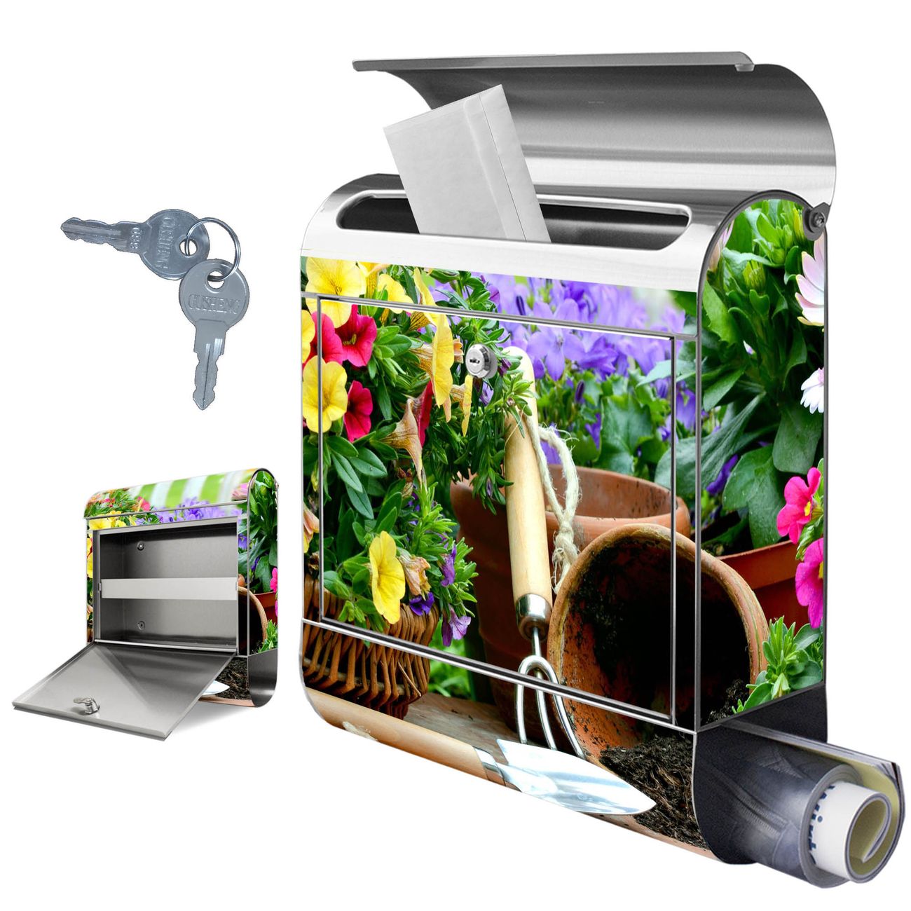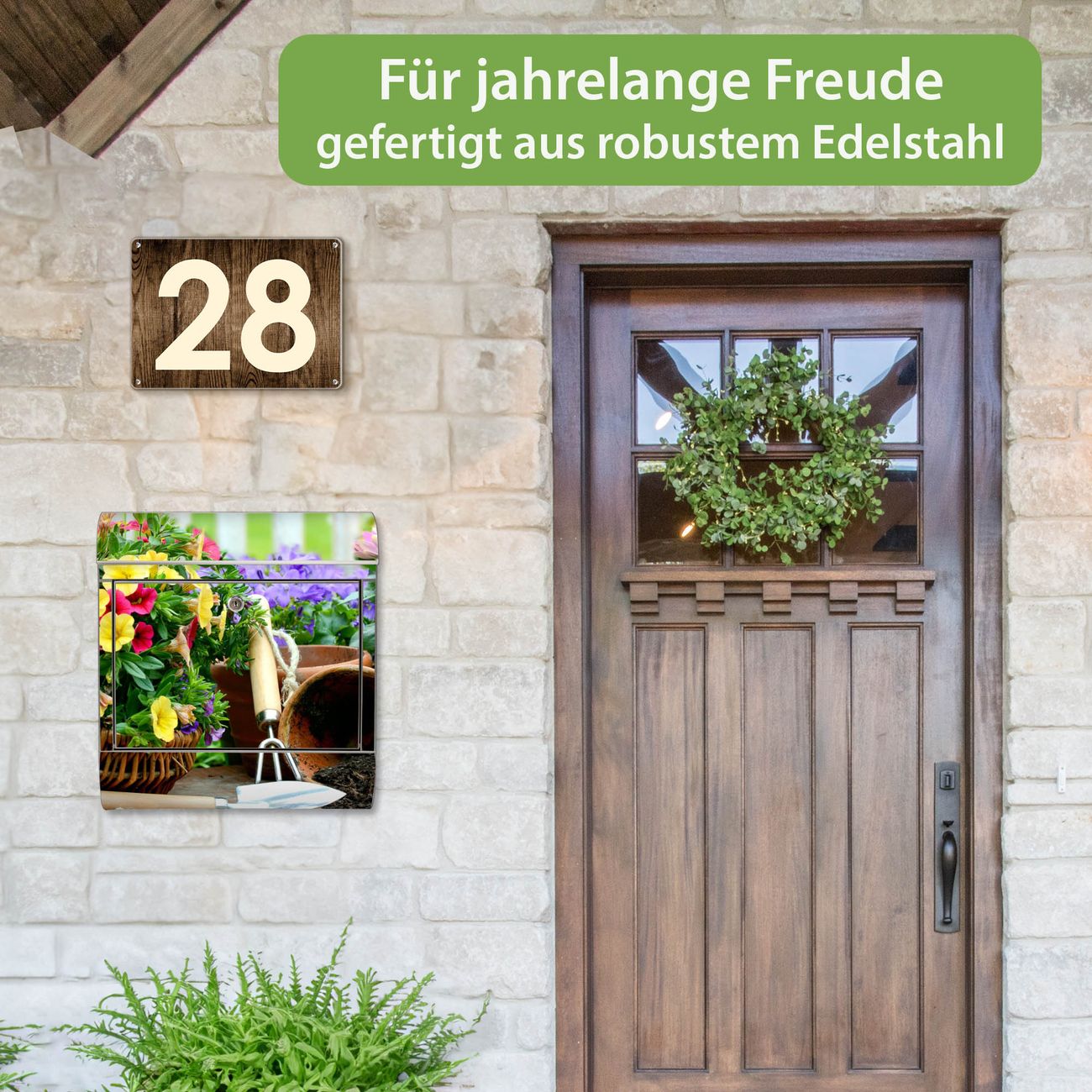 Wandbriefkasten Edelstahl Motiv Gartenfreude