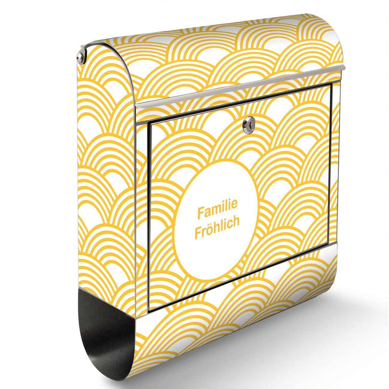 Wandbriefkasten Edelstahl Motiv Gelbe Wellen