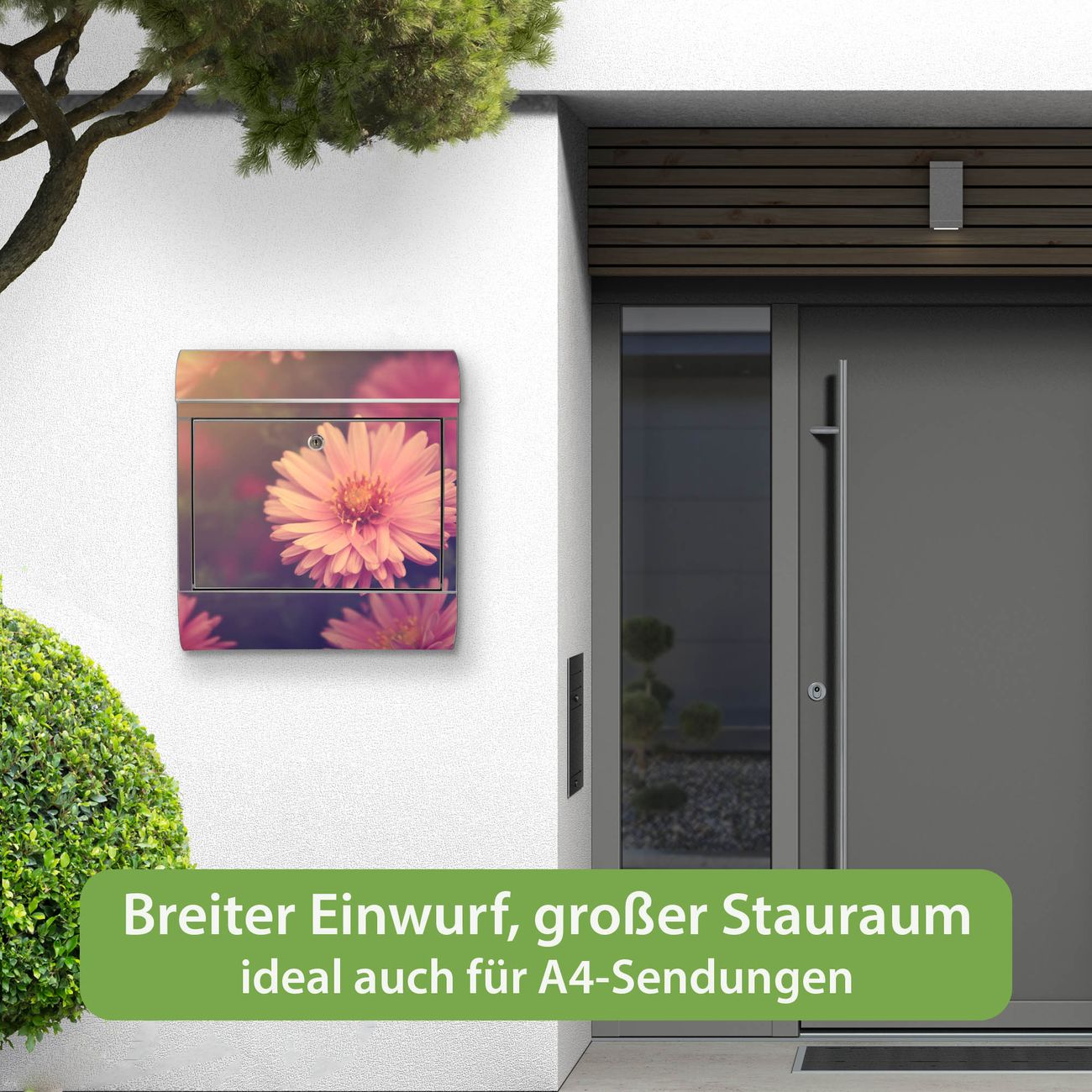 Wandbriefkasten Edelstahl Motiv Gerbera 2
