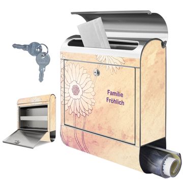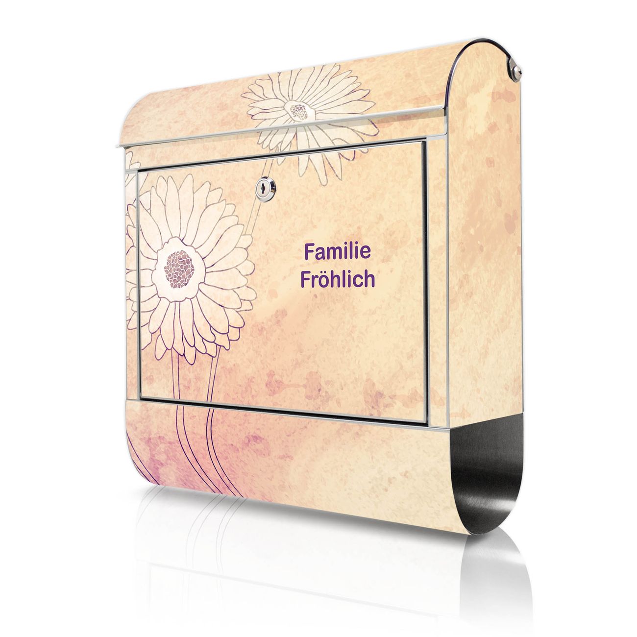 Wandbriefkasten Edelstahl Motiv Gerbera