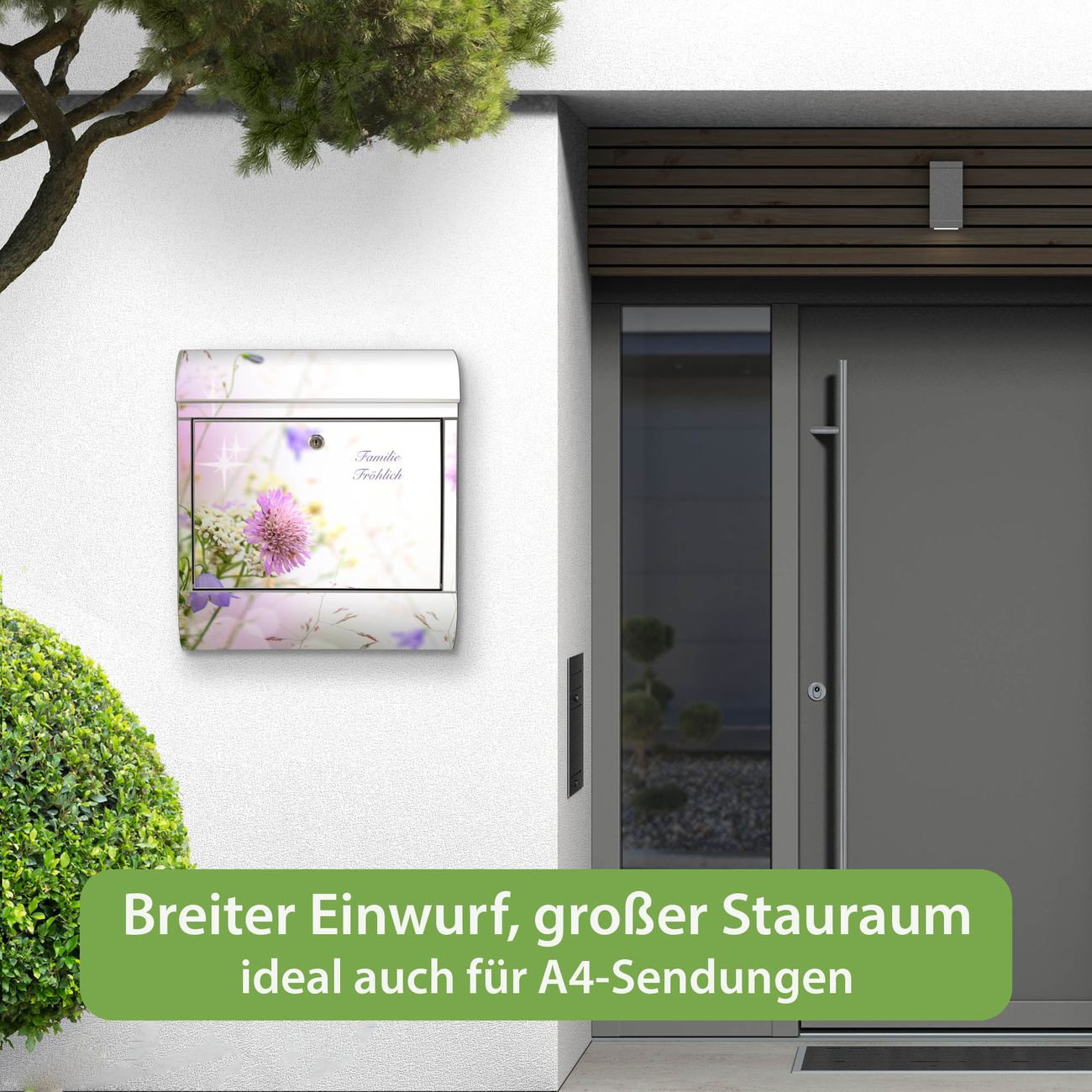 Wandbriefkasten Edelstahl Motiv Glitzernde Wiese
