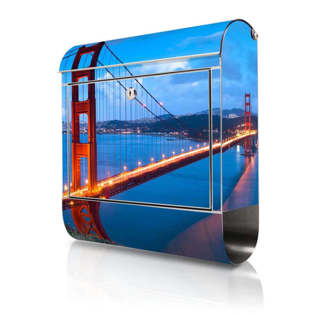 Wandbriefkasten Edelstahl Motiv Golden Gate Bridge