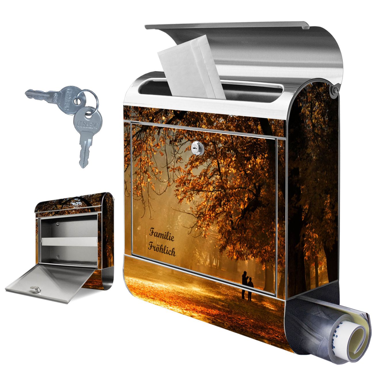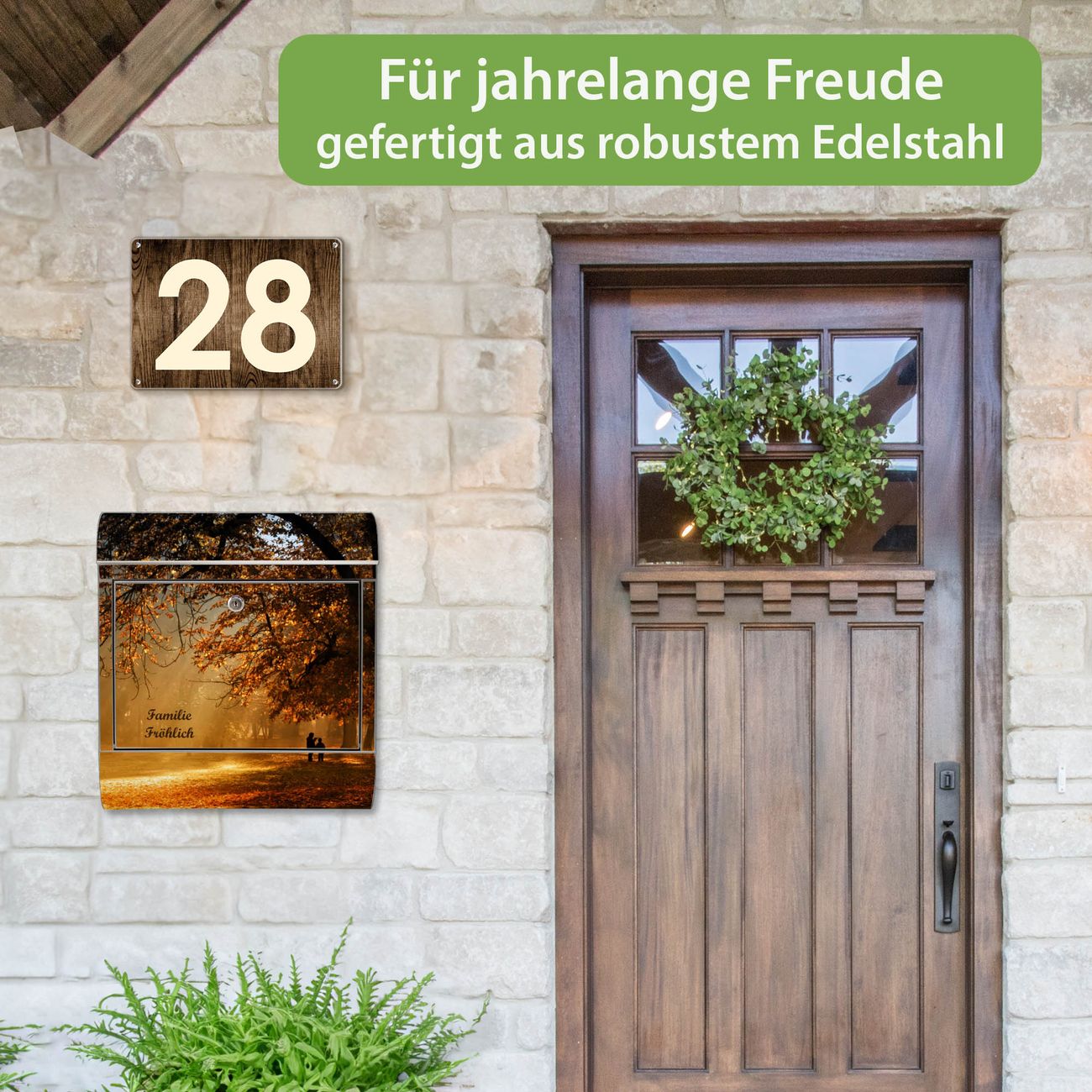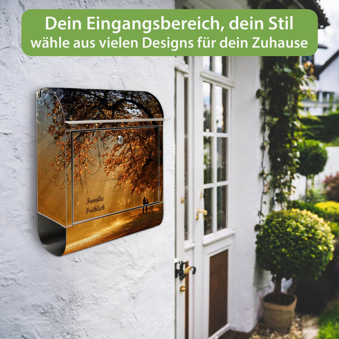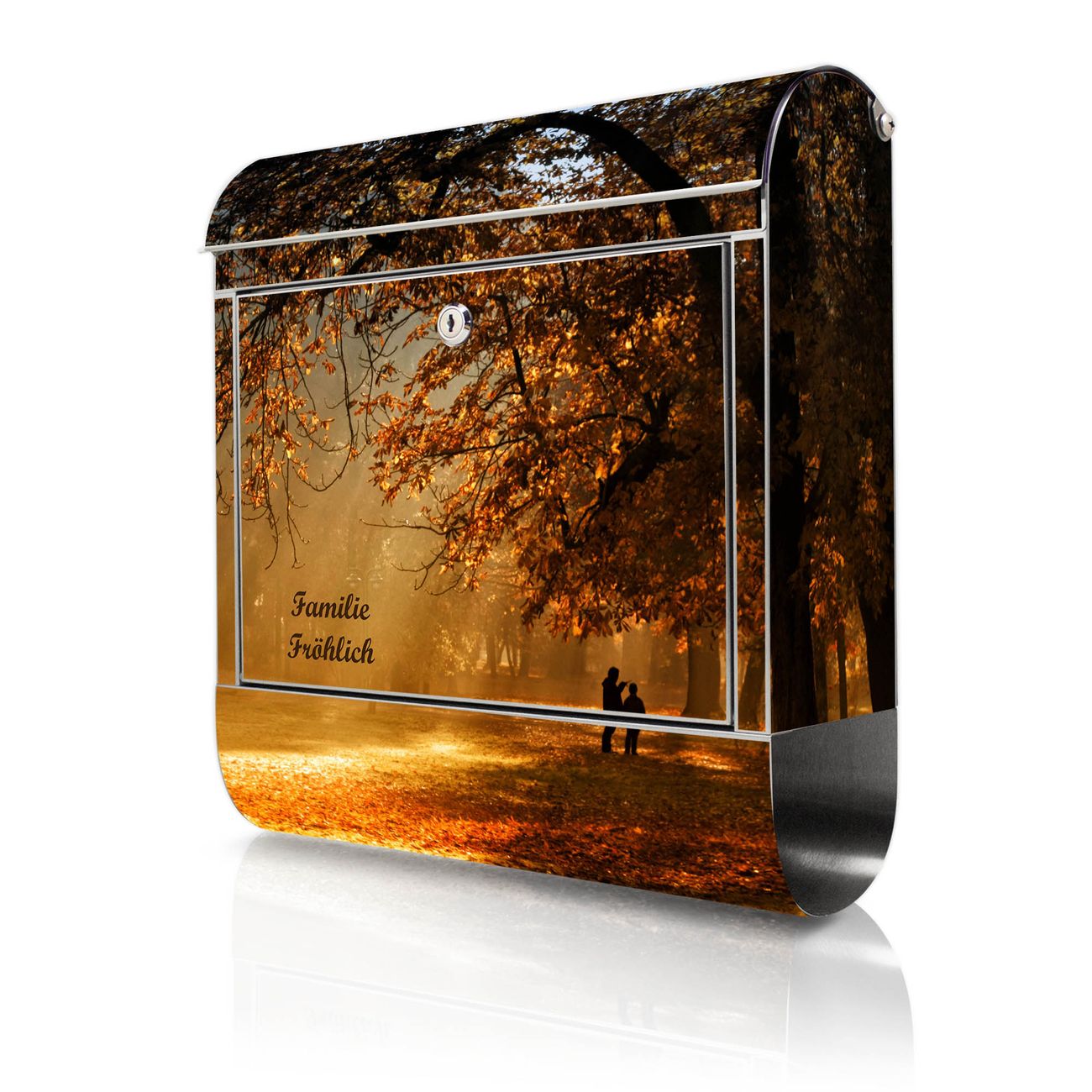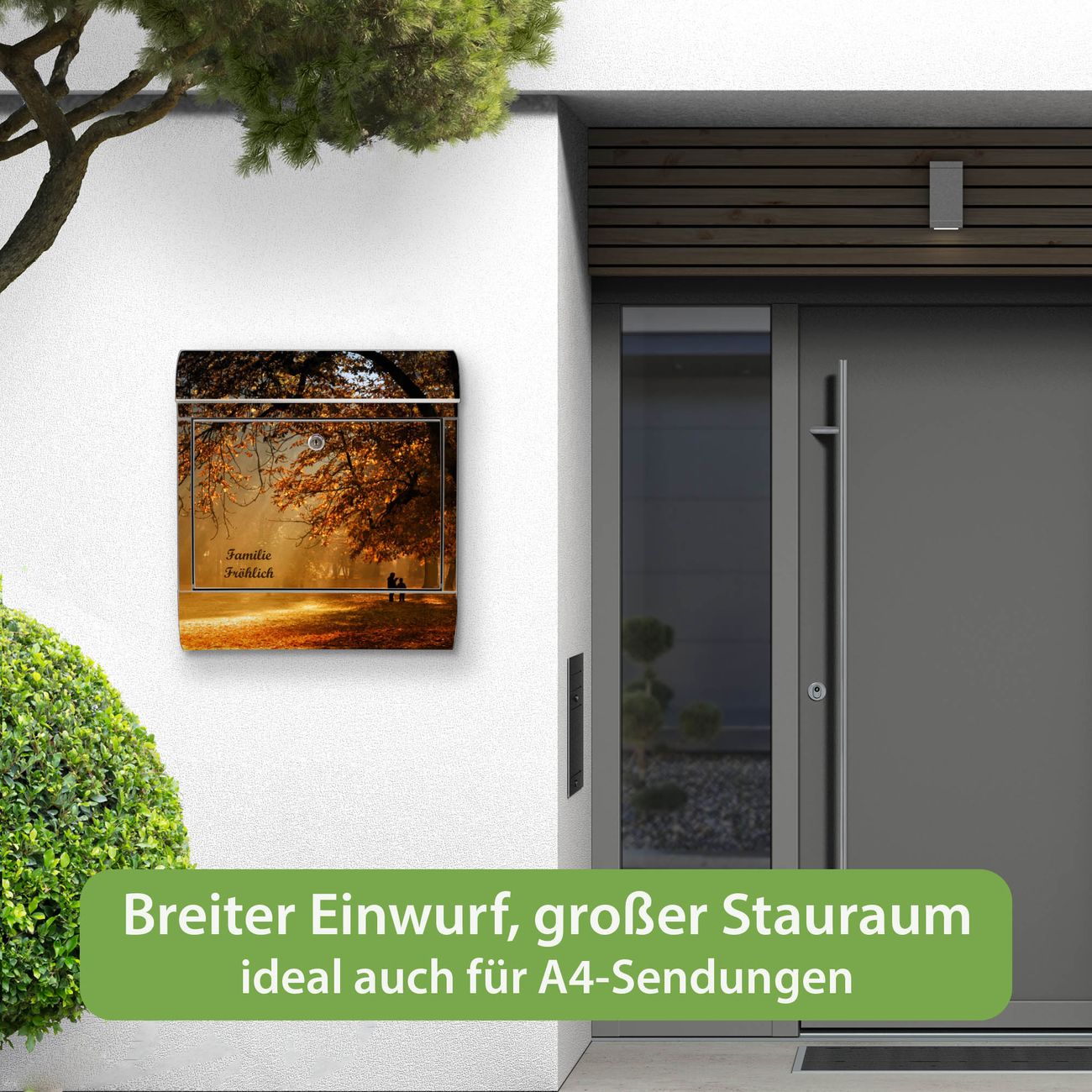 Wandbriefkasten Edelstahl Motiv Goldener Herbst