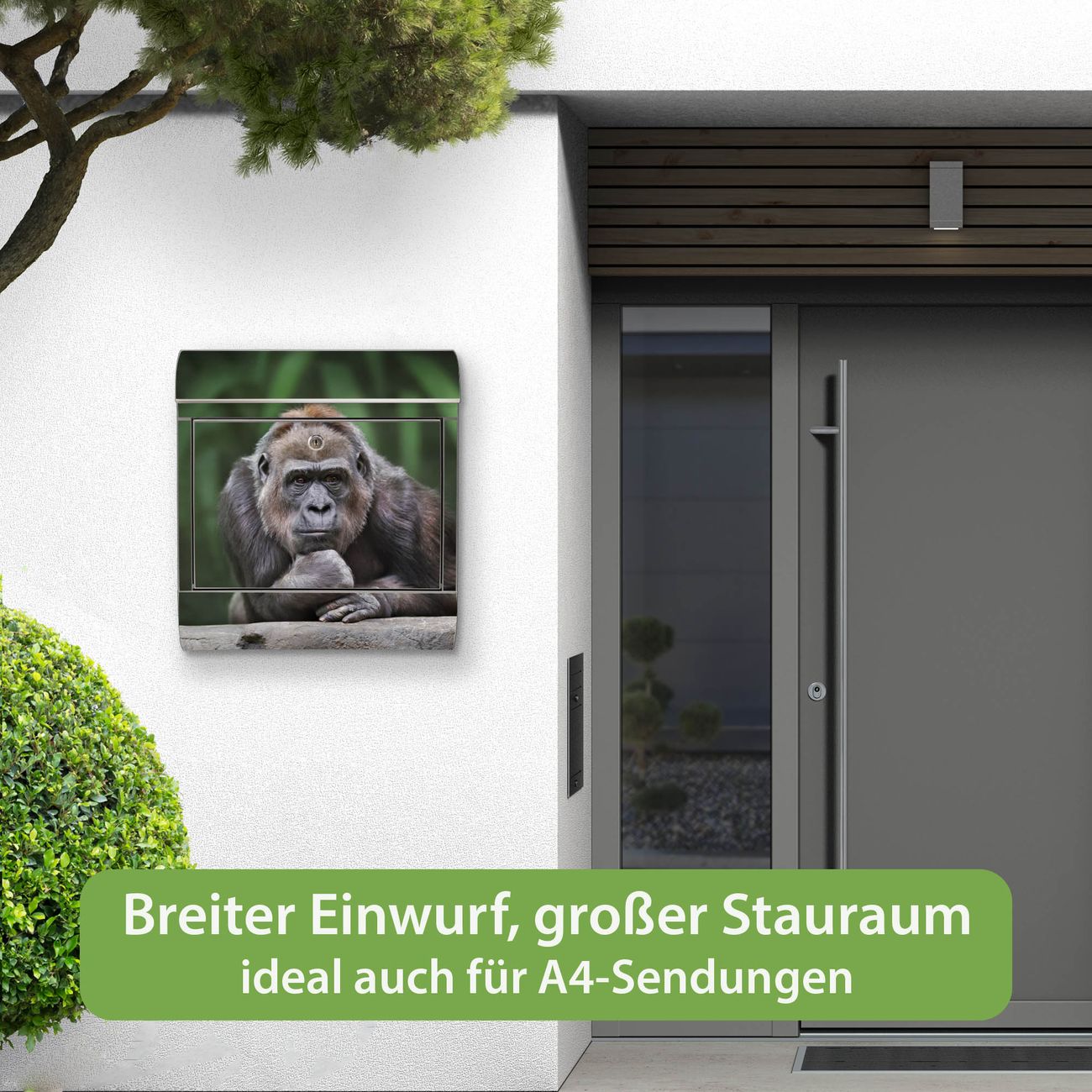Wandbriefkasten Edelstahl Motiv Gorilla