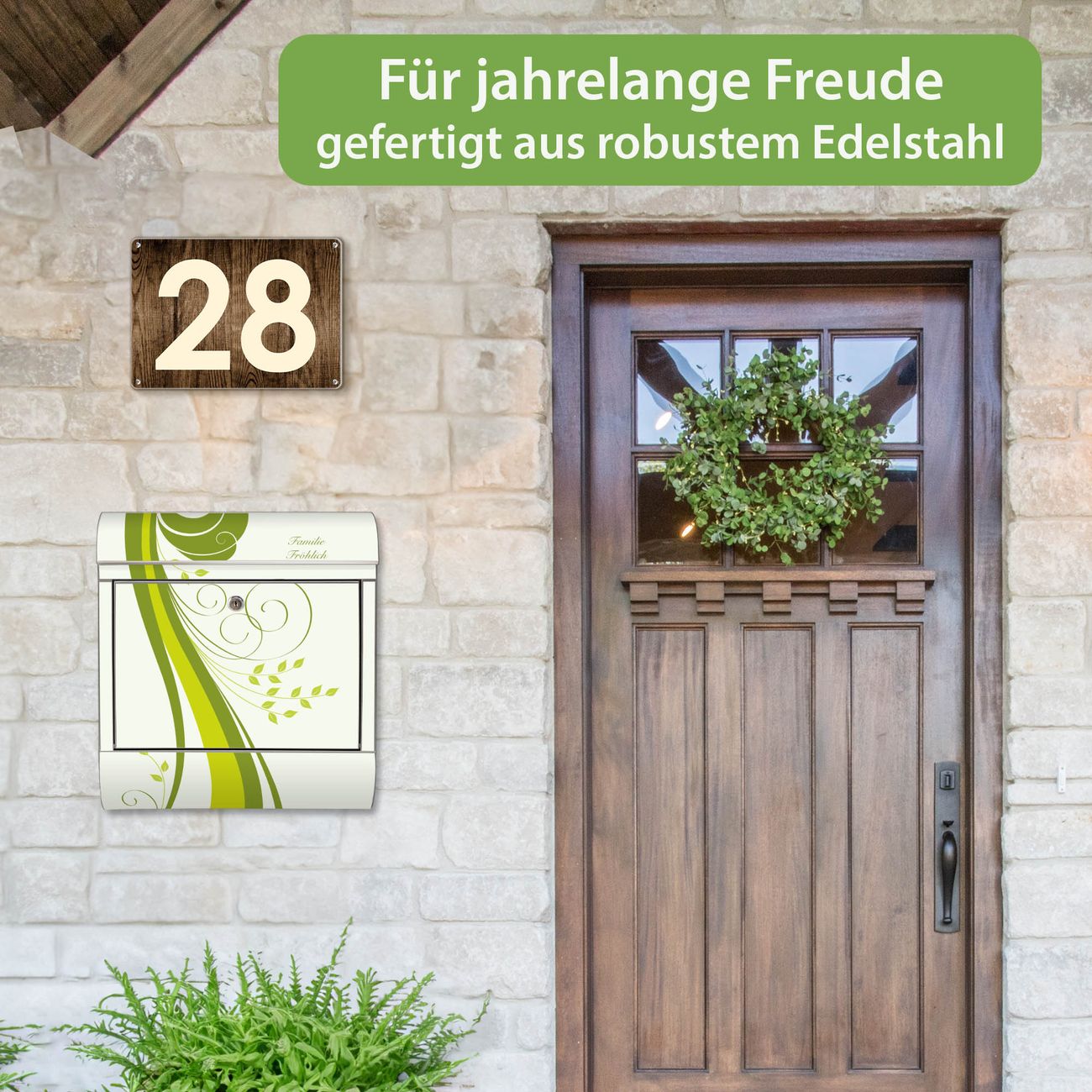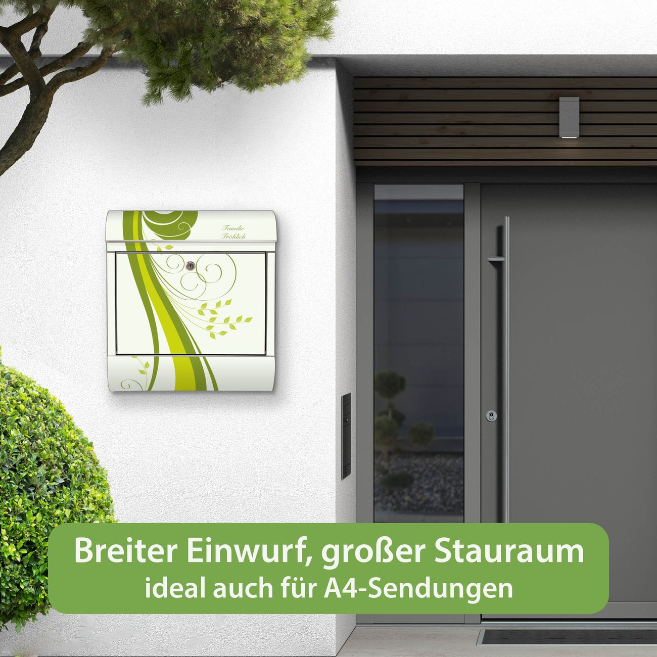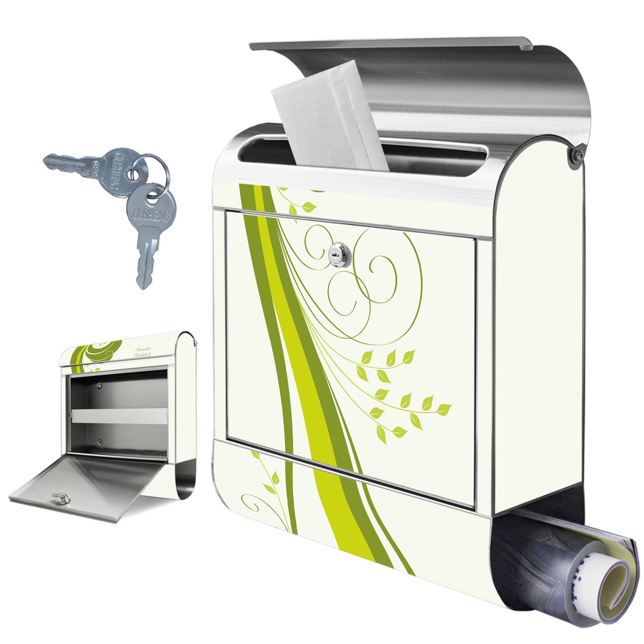 Wandbriefkasten Edelstahl Motiv Green Swirl