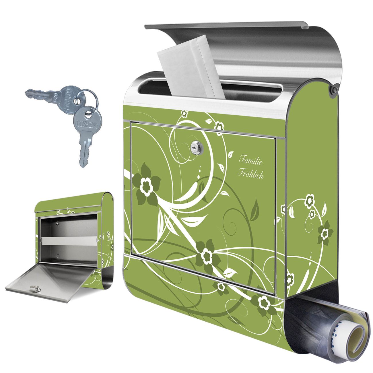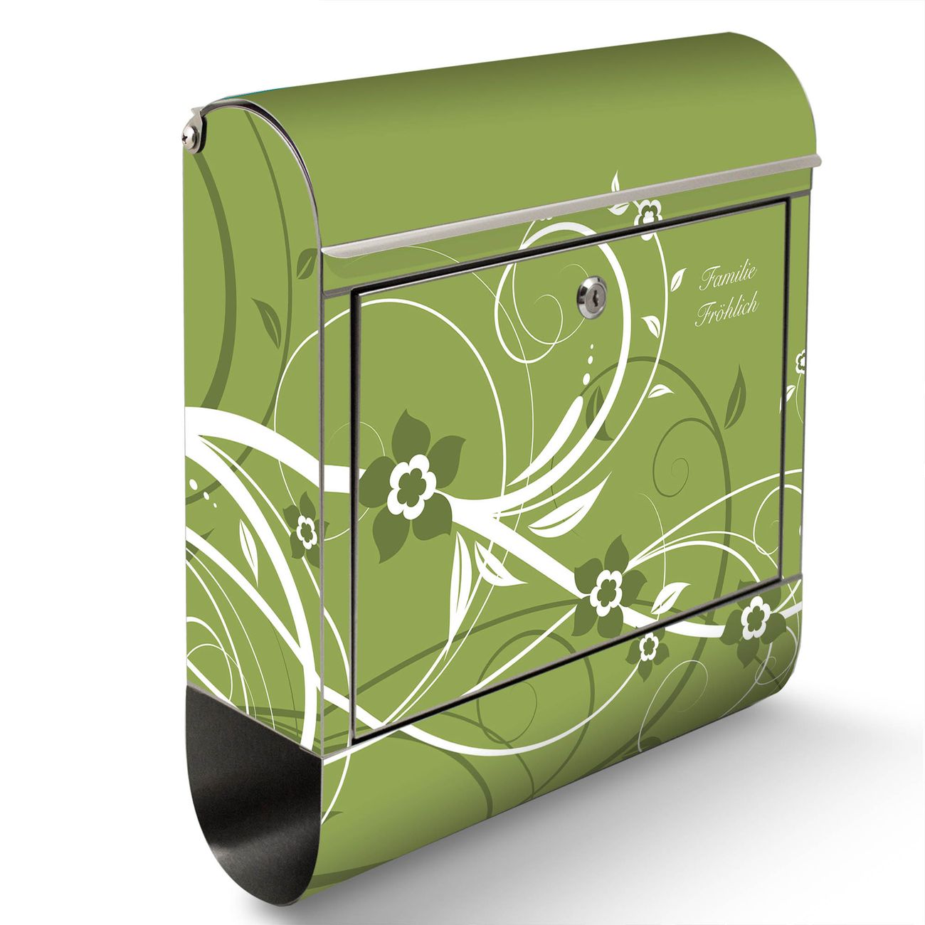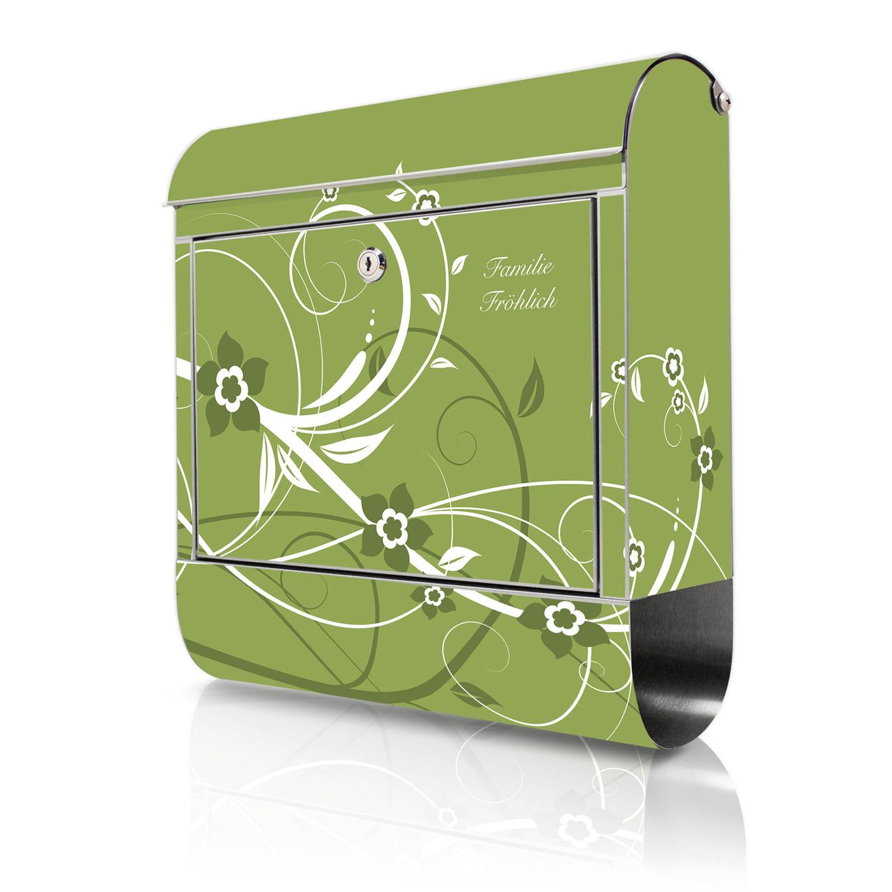Wandbriefkasten Edelstahl Motiv Grüne Blüten