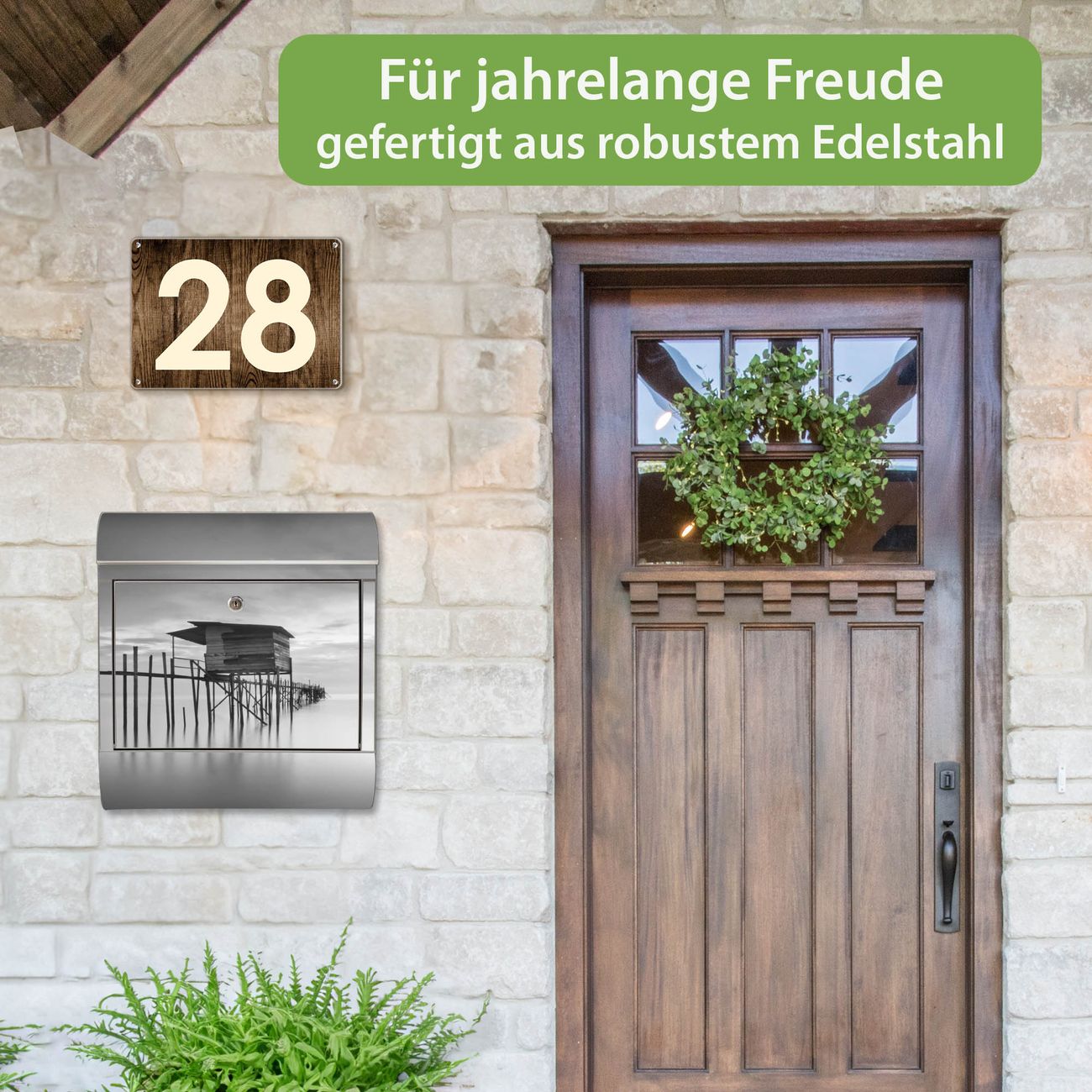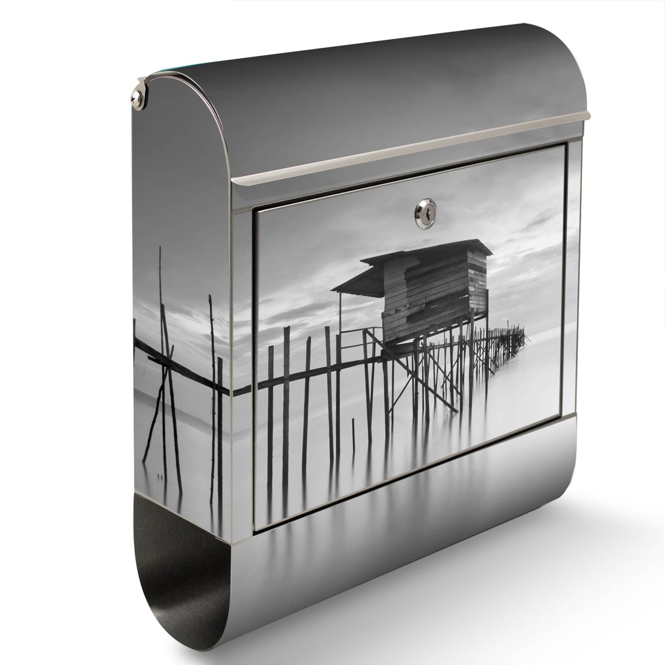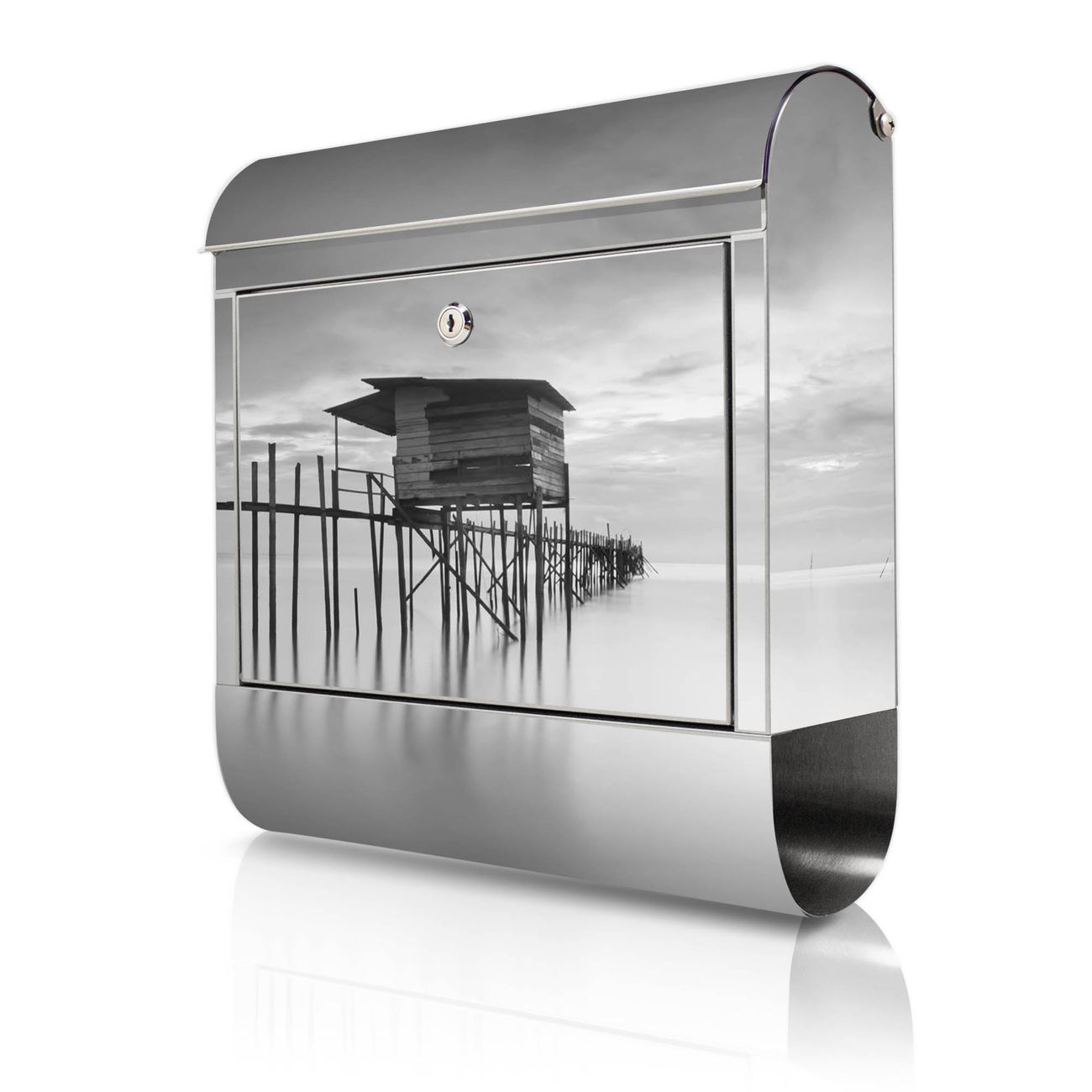 Wandbriefkasten Edelstahl Motiv Haus am See