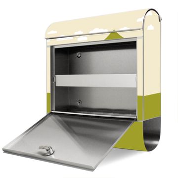 FUNKTION: Der banjado Edelstahl Briefkasten mit Motiv Motiv Heimweg bietet Ihnen mit seinem Fassungsvermögen genügend Platz auch für große A4 Sendungen. Das integrierte Zeitungsfach eignet sich hervorragend um unkompliziert die Tageszeitung zu fassen. Auf Wunsch können Sie bei uns den passenden Ständer kaufen und so aus dem Wandbriefkasten einen Standbriefkasten machen. DESIGN: Der Motivbriefkasten hat ein sehr ansprechendes und ausgefallenes Design, damit entlocken Sie Ihren Nachbarn und dem Postboten ein Lächeln. Heben Sie Sich ab von der tristen grauen Masse ohne auf Funktionalität zu verzichten. DETAILS: Der Design Briefkasten mit Motiv Motiv Heimweg besteht aus hochwertigem 18/0 Edelstahl. Das Motiv besteht aus einer wetter- und UV-resistenten Folie, die mit einem Schutzlaminat überzogen ist. Der Briefkasten wird mit Montagematerial und zwei Schlüsseln geliefert. NUTZEN: Sie können diesen Briefkasten sowohl als Wandbriefkasten montieren oder einen passenden Ständer auswählen und als Standbriefkasten einbetonieren. Die Größe bietet genügend Platz für Sendungen aller Art, das hochwertige Edelstahl ist rostfrei und die Motivfolie absolut wetterfest. SCHUTZ: Um Ihre Post optimal vor Witterungseinflüssen wie Starkregen zu schützen, empfehlen wir, den Briefkasten geschützt anzubringen. BANJADO: Ihr Briefkasten wird in Sachsen in einer kleinen Manufaktur von Hand veredelt. Die Motivfolie ist lösungsmittelfrei und schutzlaminiert, dies sorgt für einen langen Halt. Wir legen großen Wert auf die Verbindung von Funktionalität und Design. Sie erhalten Handarbeit aus Sachsen.