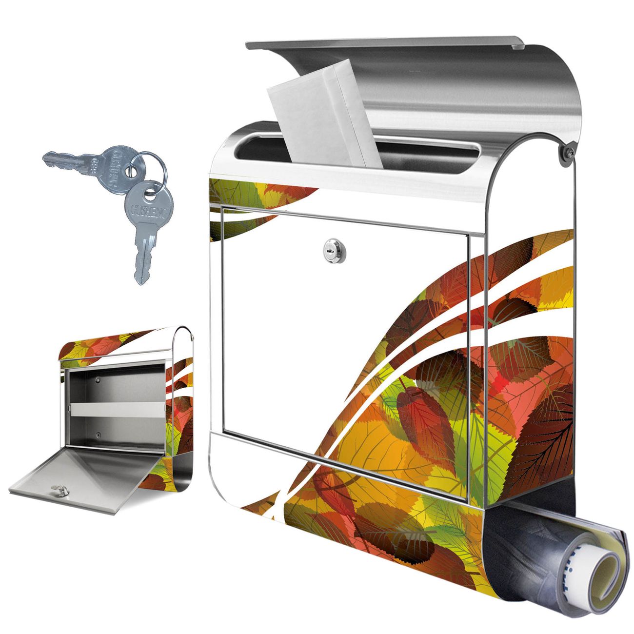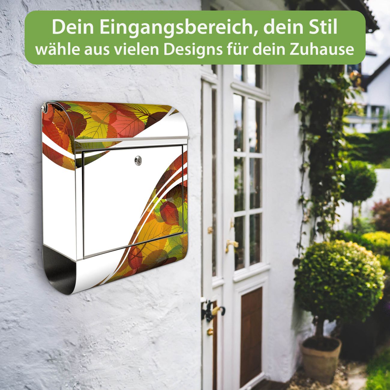 Wandbriefkasten Edelstahl Motiv Herbstlaub