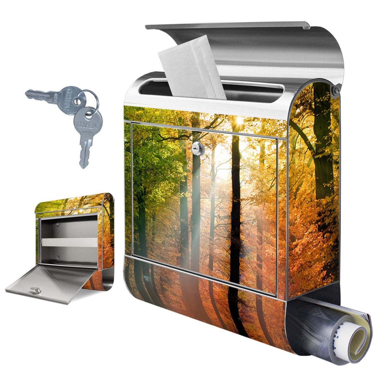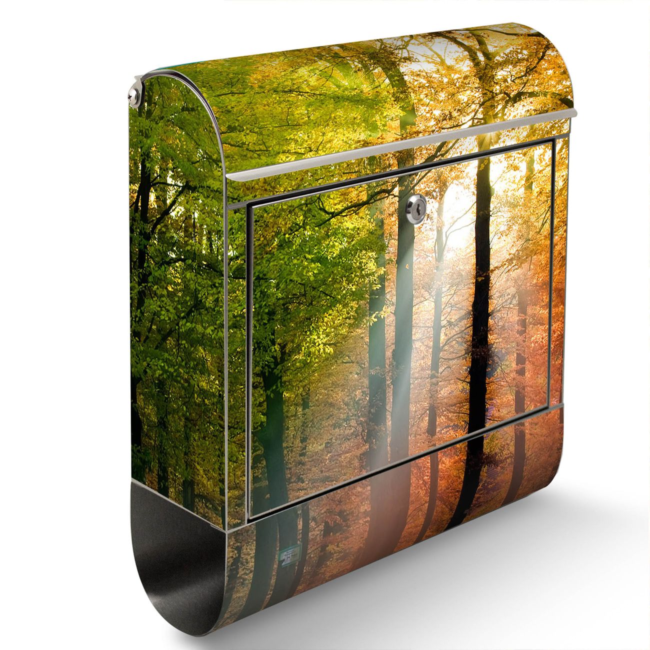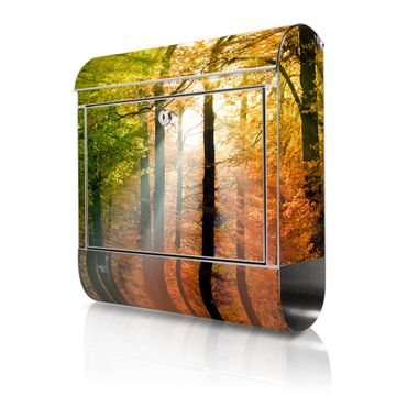 Wandbriefkasten Edelstahl Motiv Herbstwald