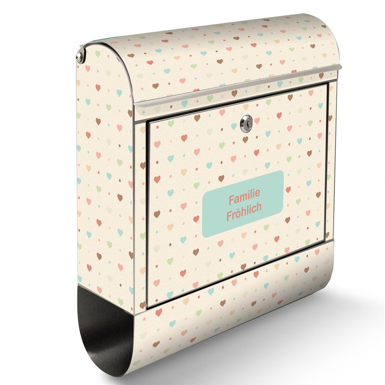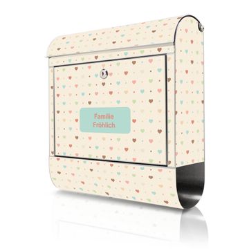Wandbriefkasten Edelstahl Motiv Herzen bunt