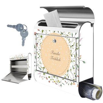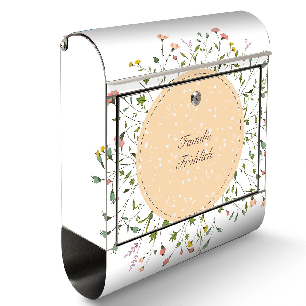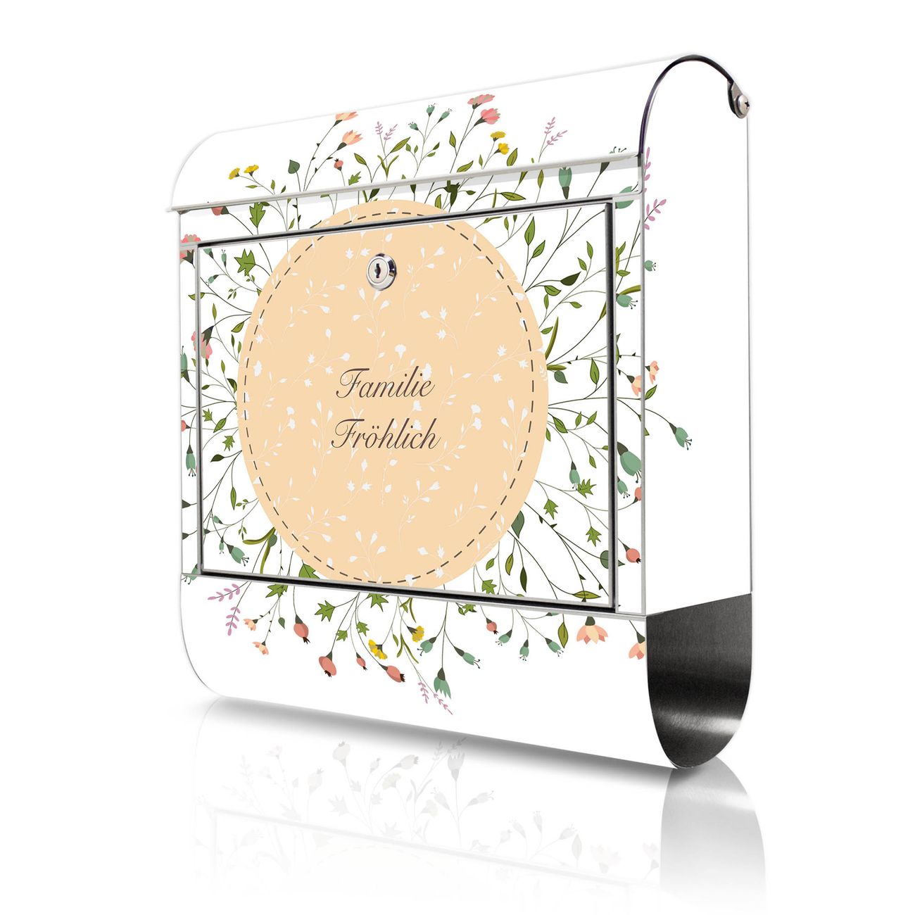 Wandbriefkasten Edelstahl Motiv Hibiskus Kreis