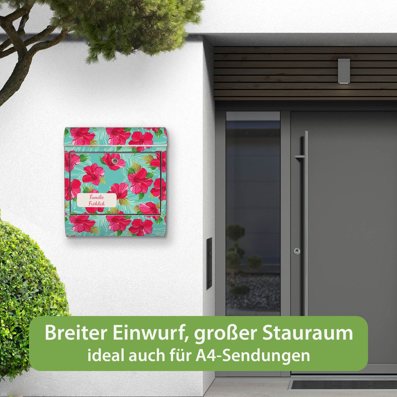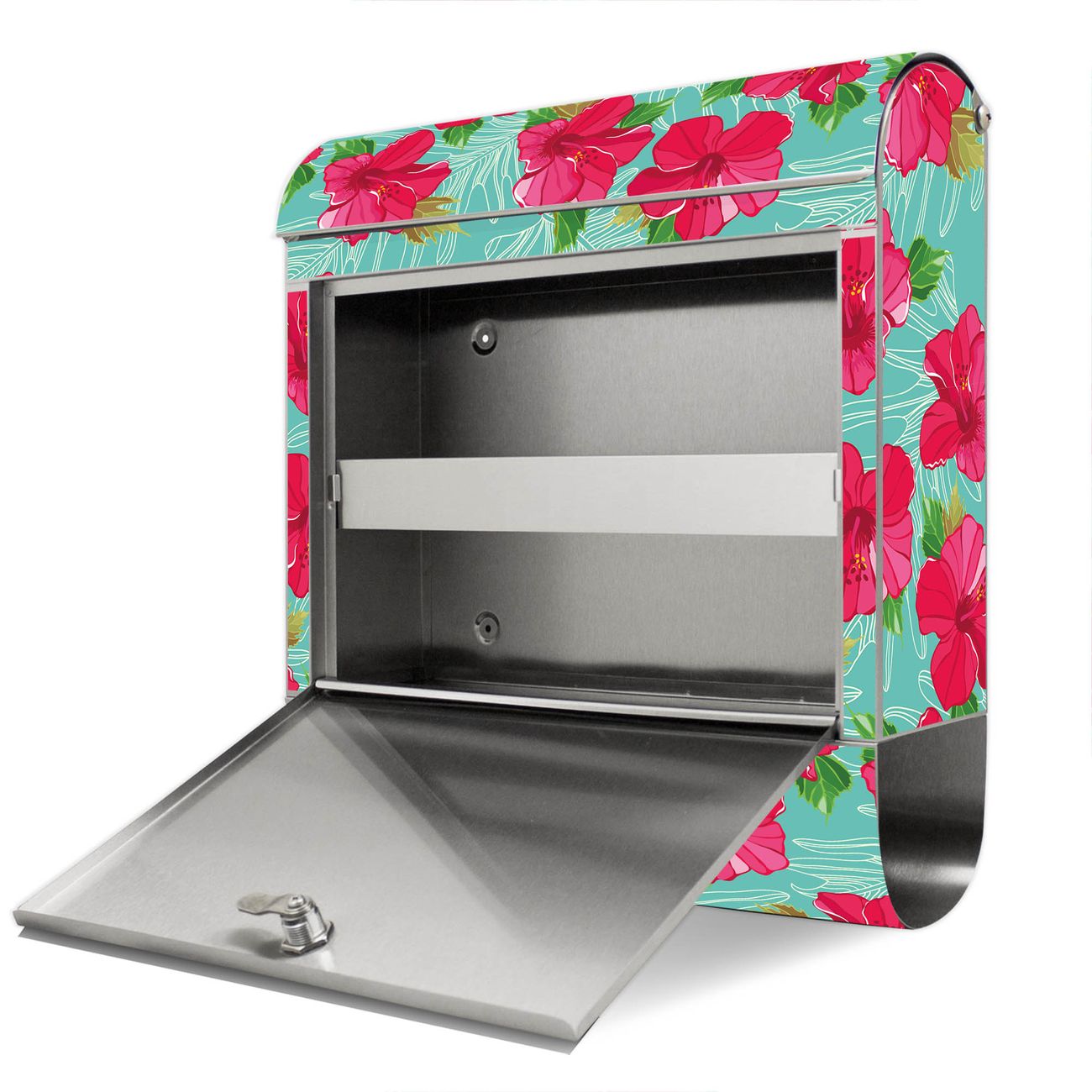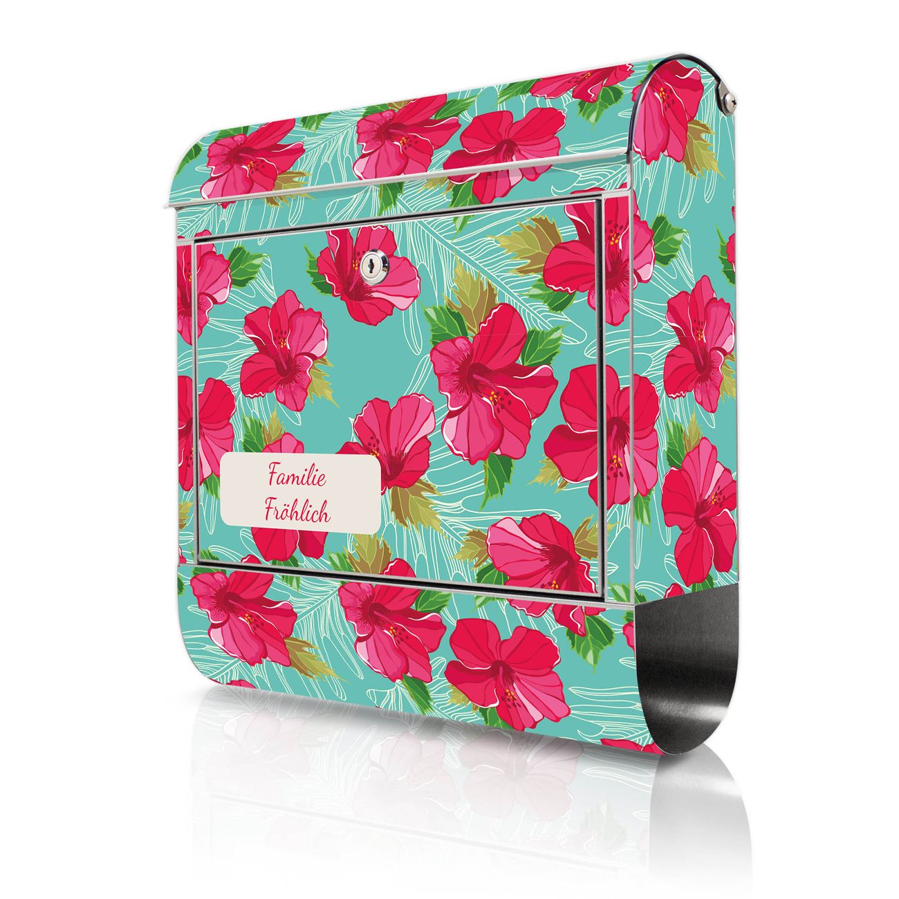 Wandbriefkasten Edelstahl Motiv Hibiskus