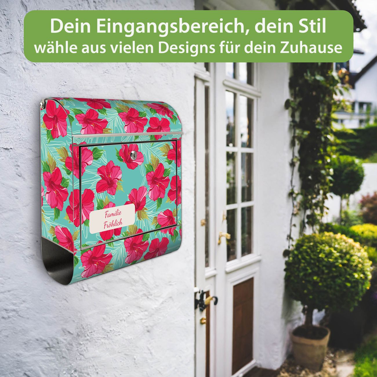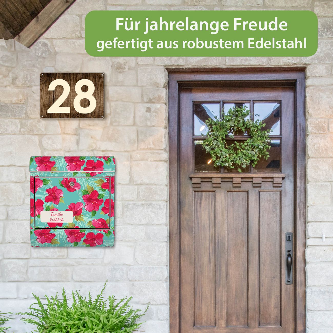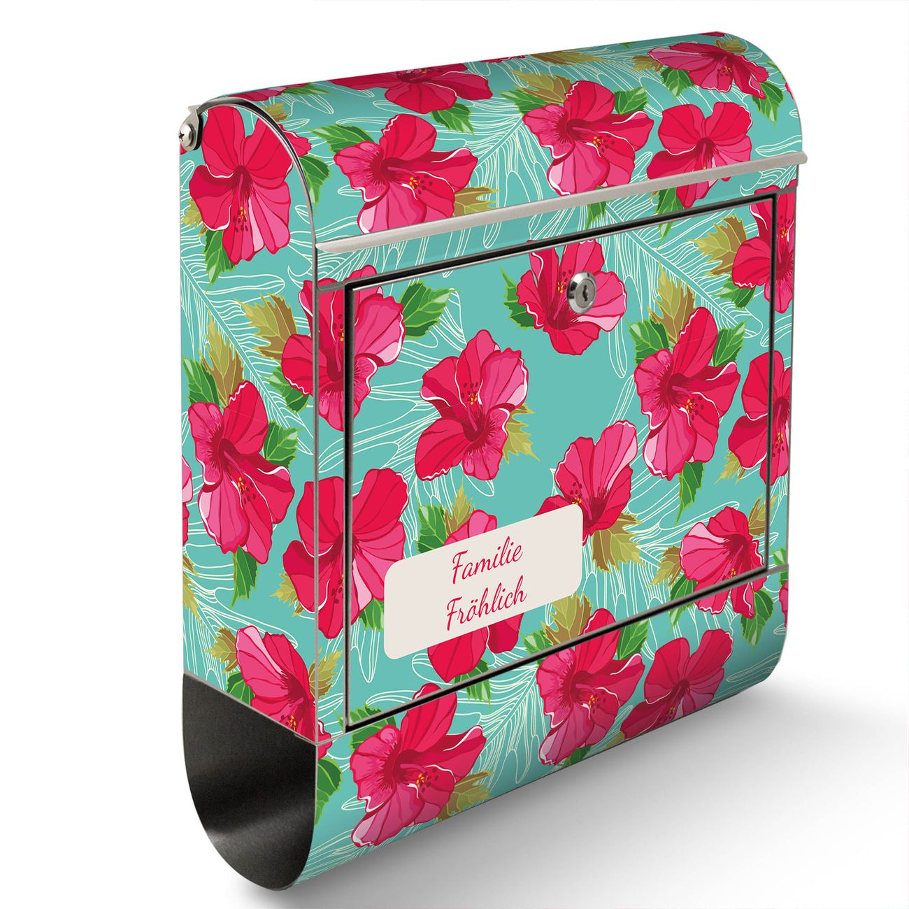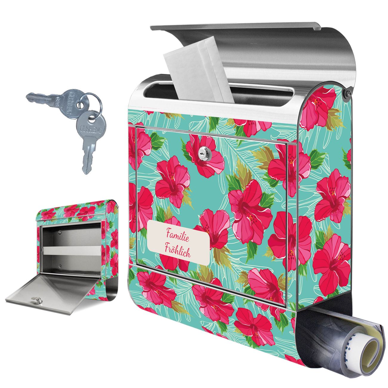 Wandbriefkasten Edelstahl Motiv Hibiskus
