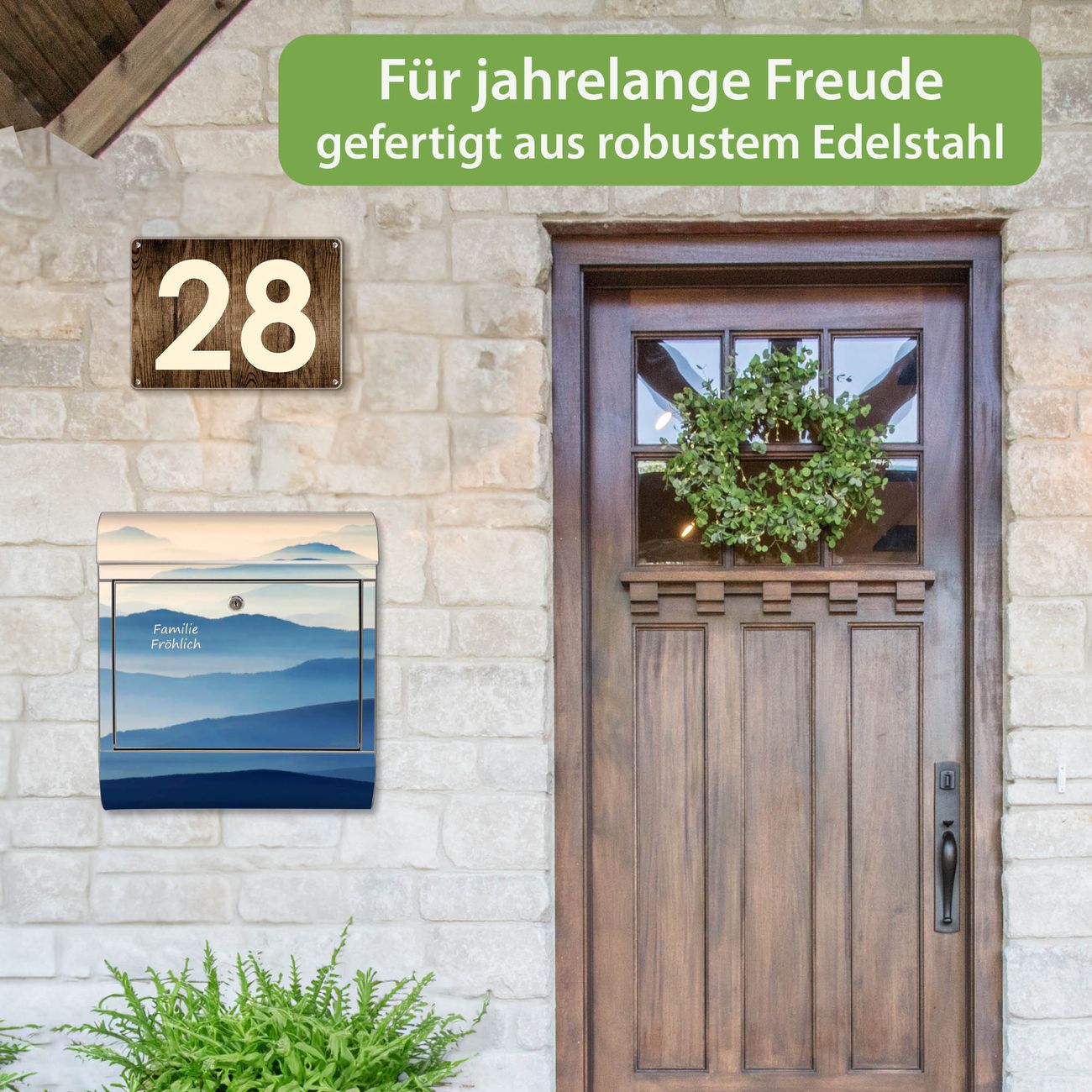 Wandbriefkasten Edelstahl Motiv Hinter den Bergen