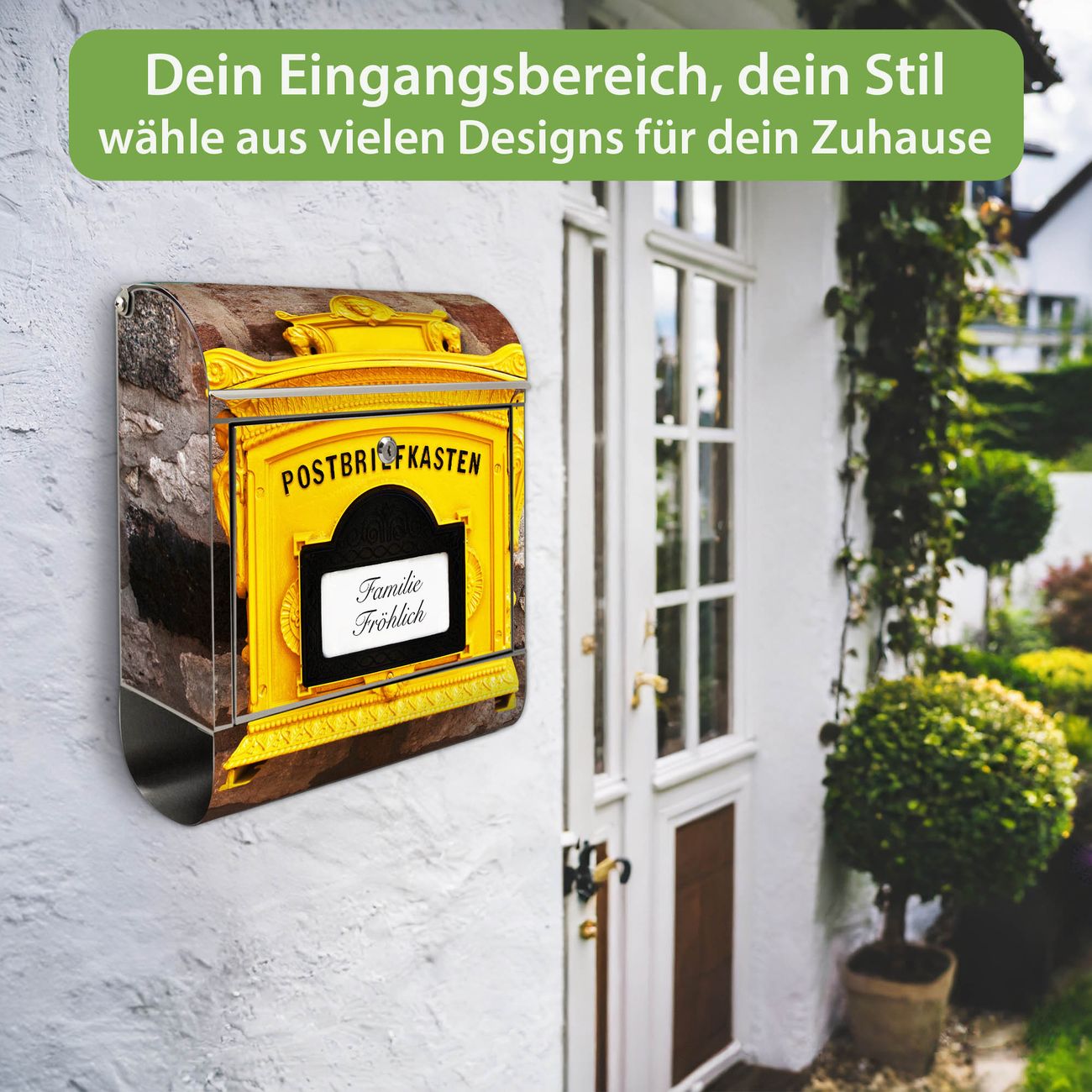Wandbriefkasten Edelstahl Motiv Historischer Postkasten