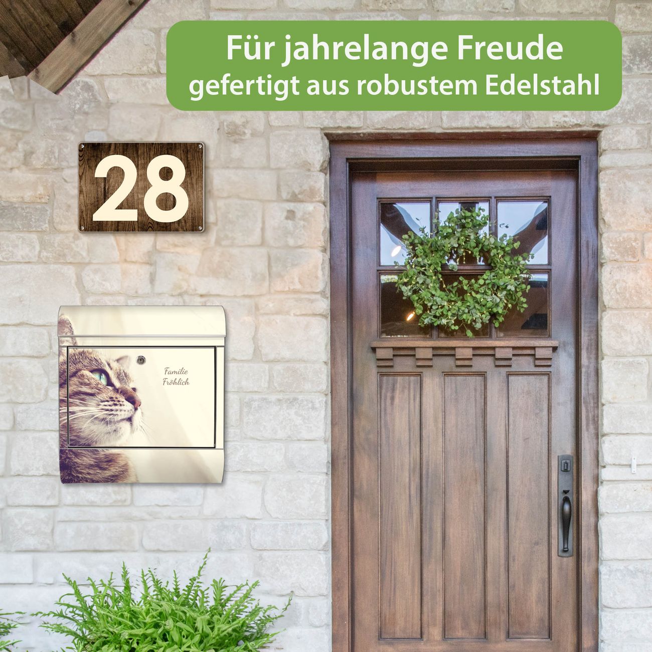 Der Vorschau-Text Familie Fröhlich wird durch Ihren persönlichen Wunschtext ersetzt. Die Schriftart und Farbe bleiben gleich wie in der Vorschau.