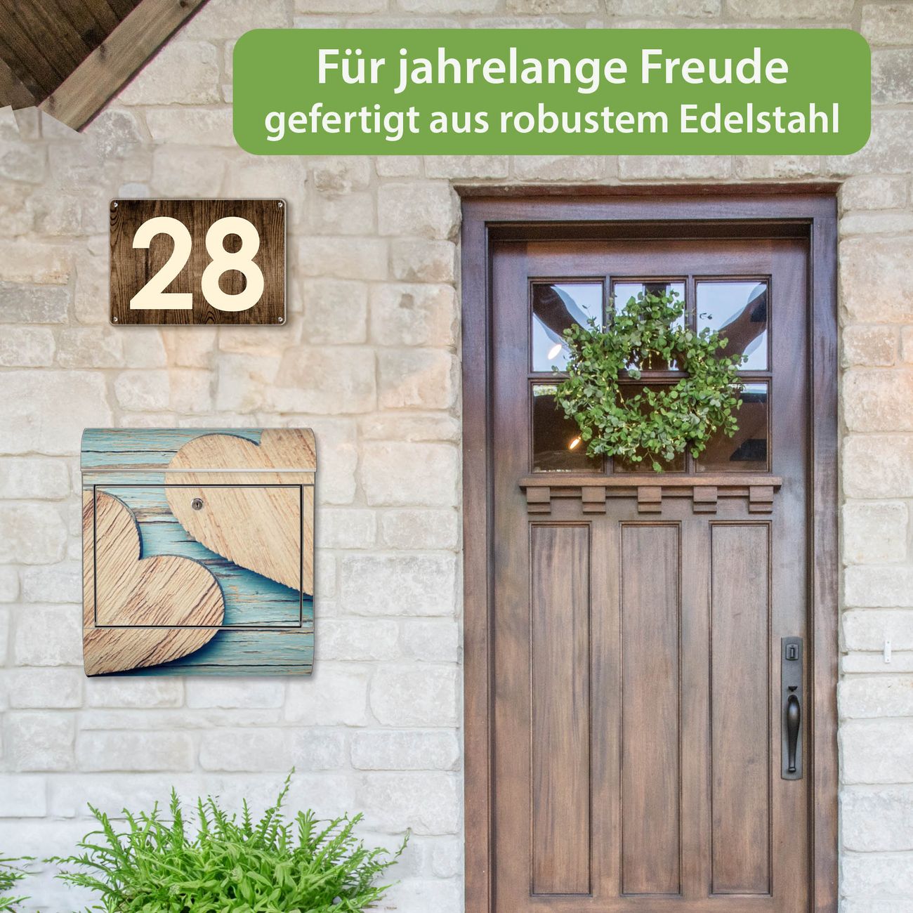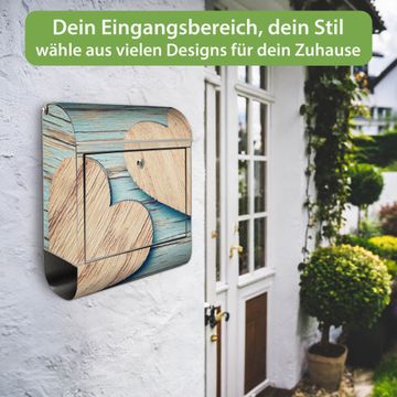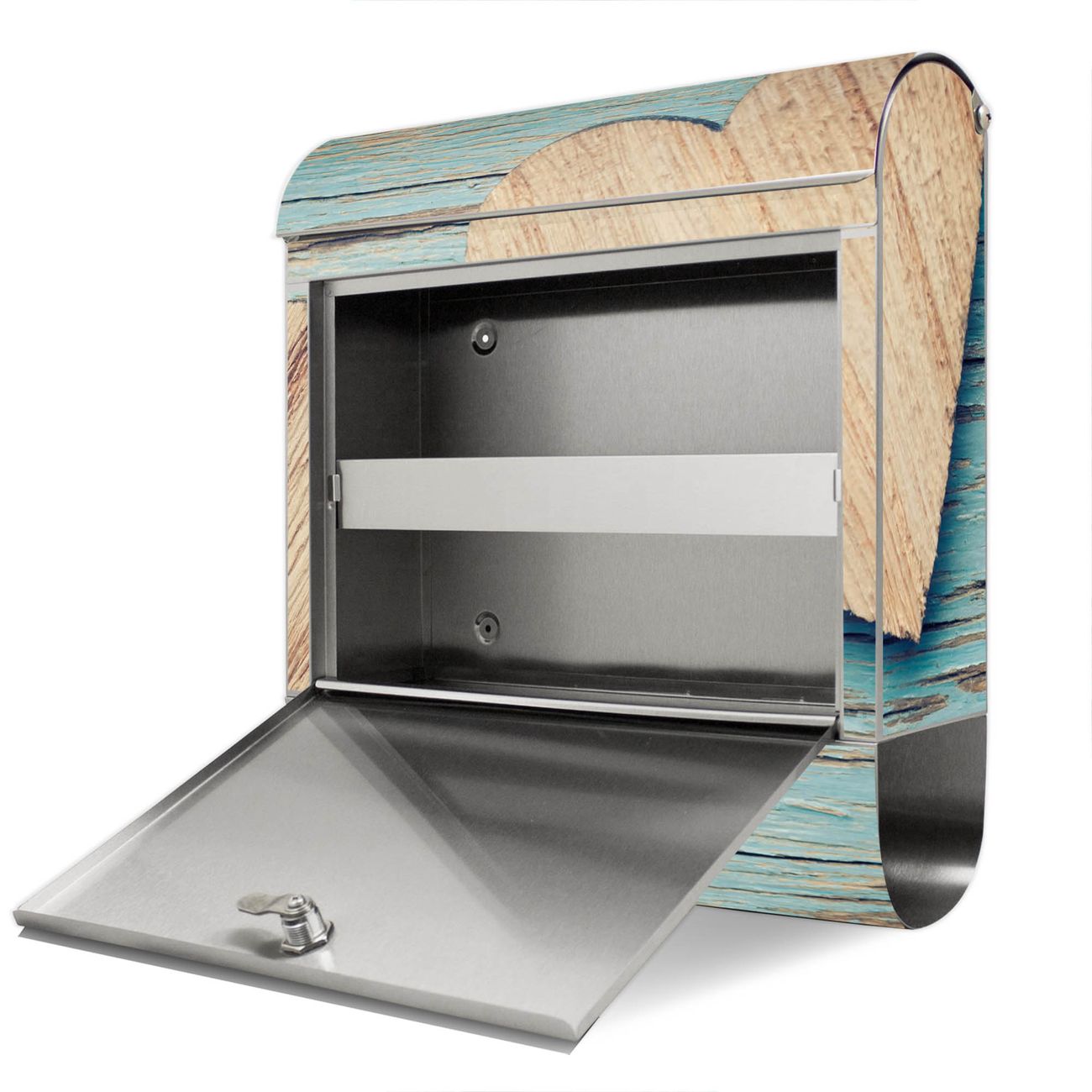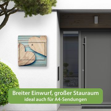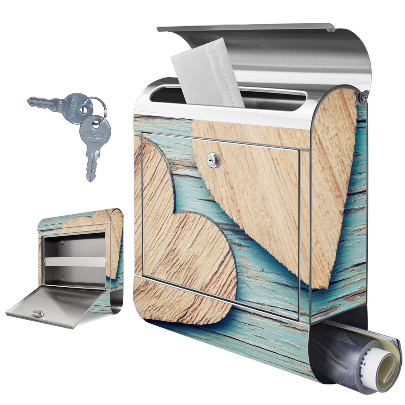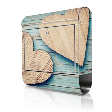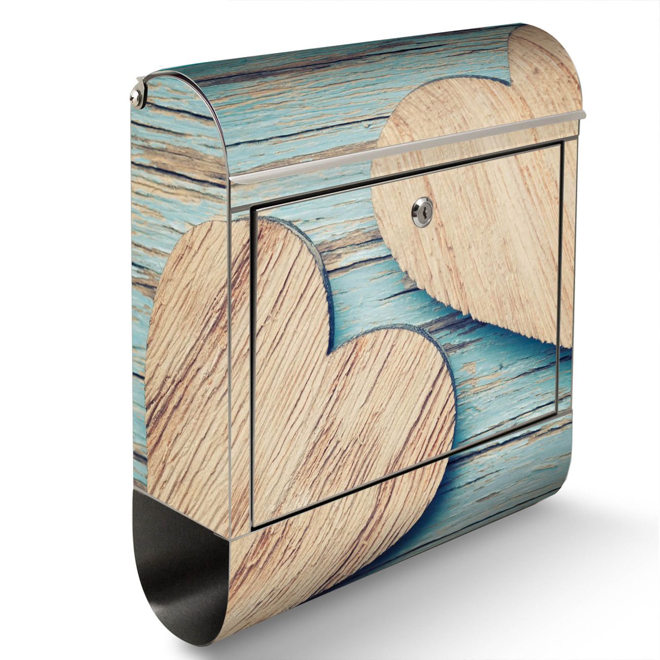 Wandbriefkasten Edelstahl Motiv Holz Herzen