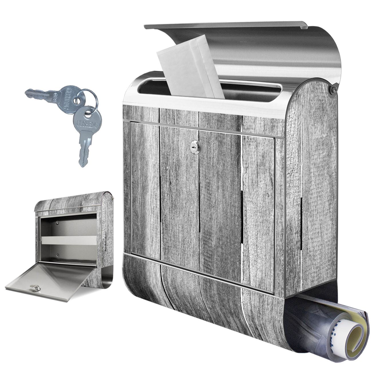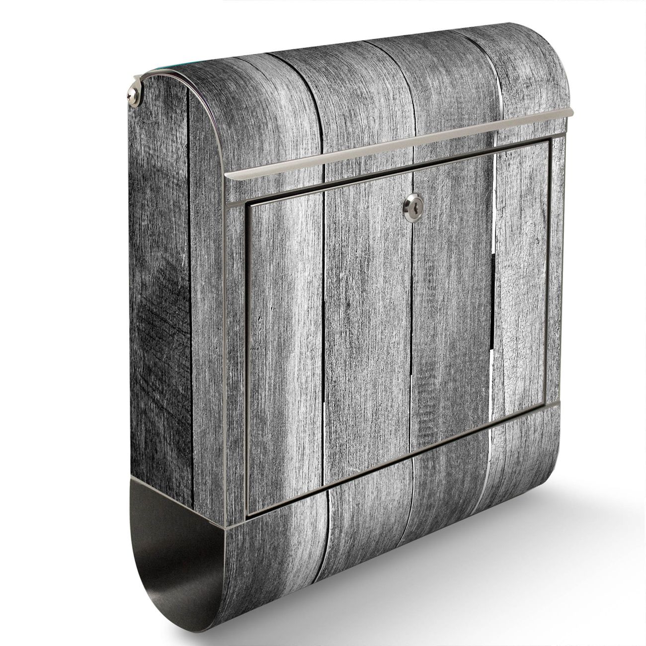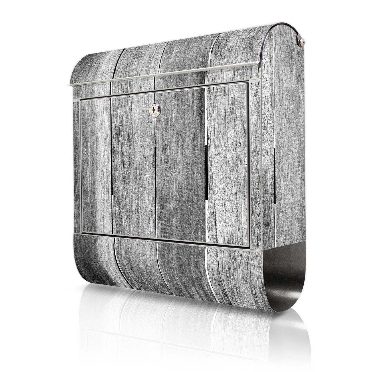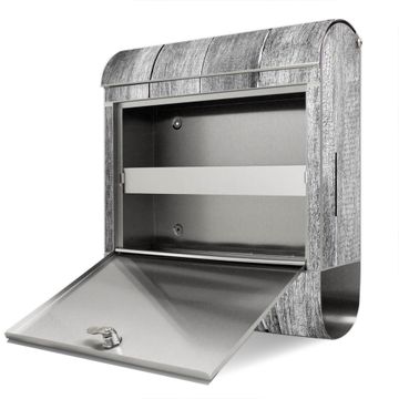 Wandbriefkasten Edelstahl Motiv Holz Monochrom